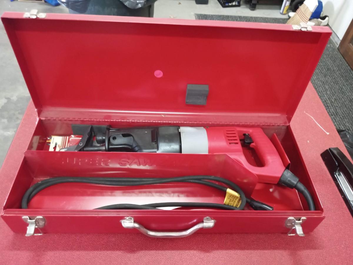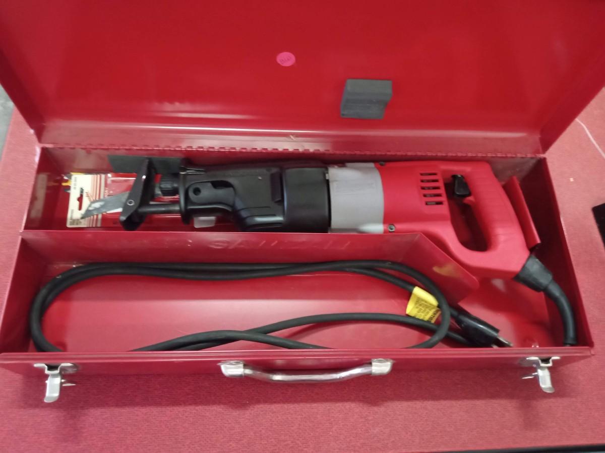 MILWAUKEE SUPER SAWZALL W/BLADES IN A METAL BOX