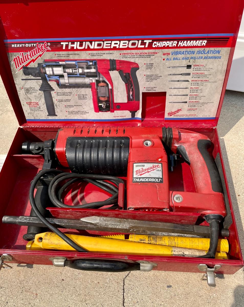 Milwaukee Thunderbolt electric Chipper Hammer. Includes metal carry case.