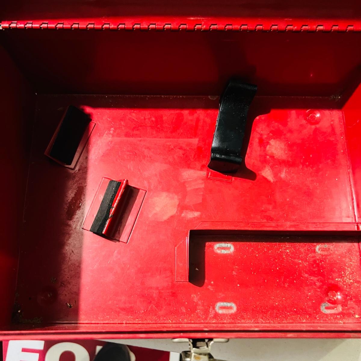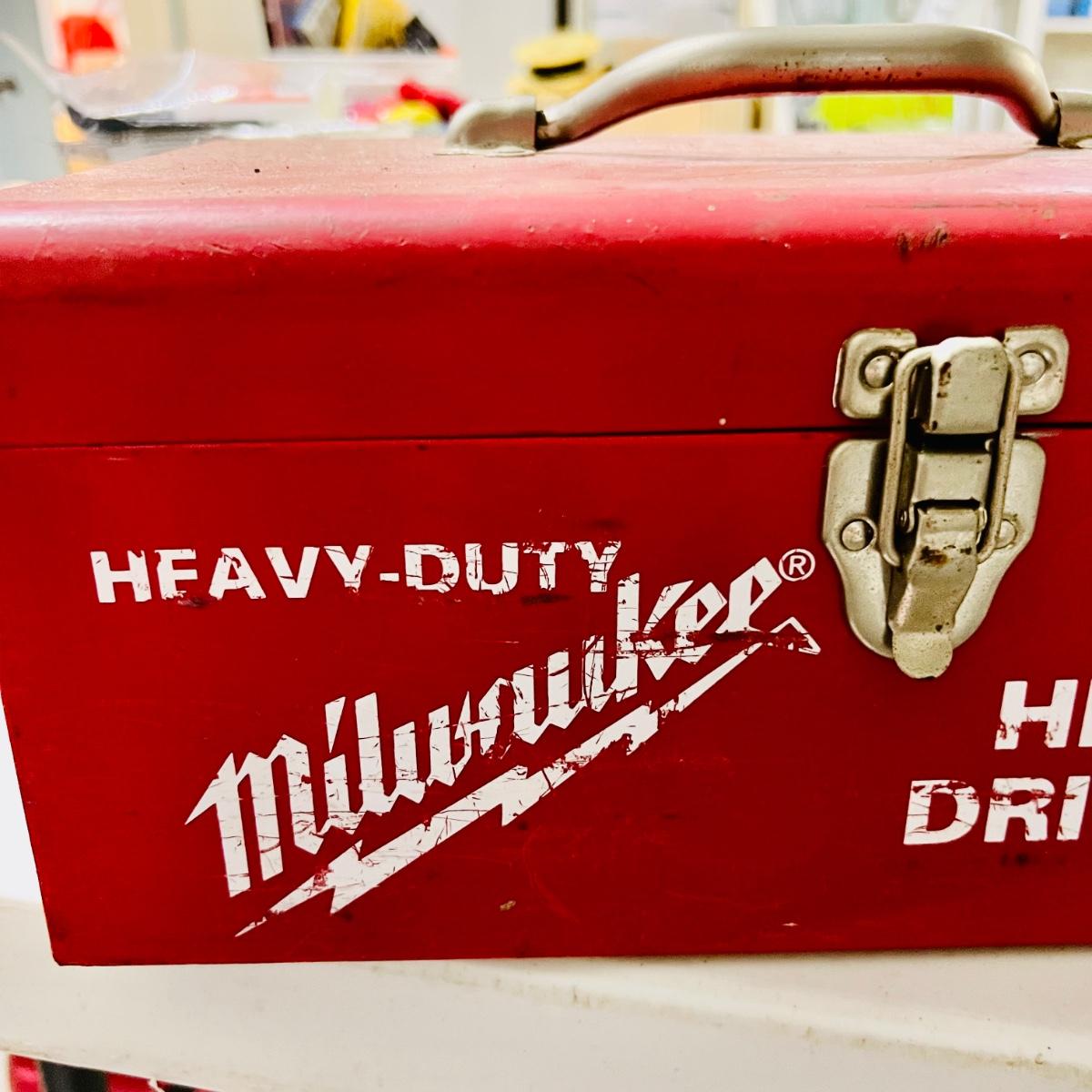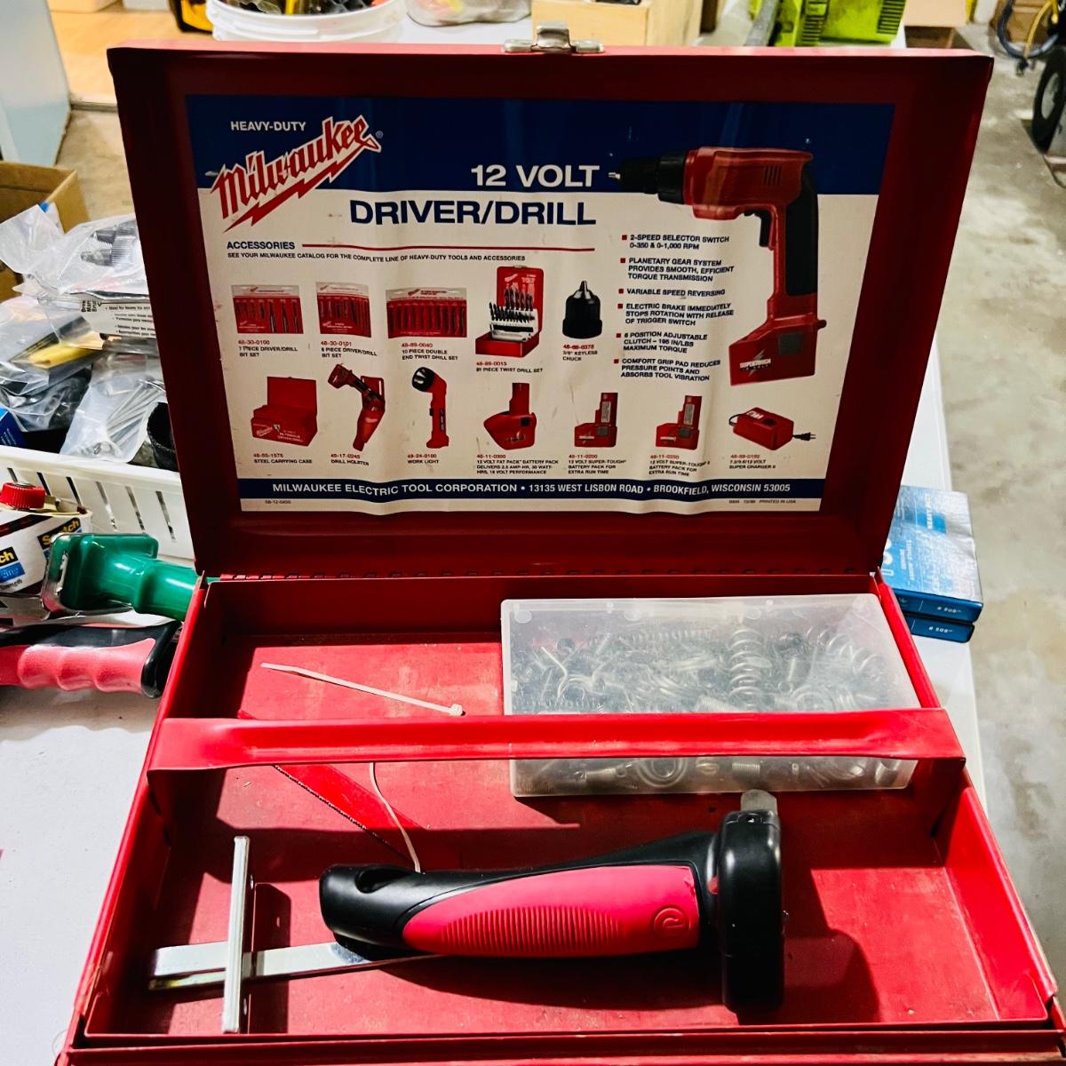 Heavy duty Milwaukee tool box measures 13.5Wx9.5”Wx6”H. Driver drill not included.