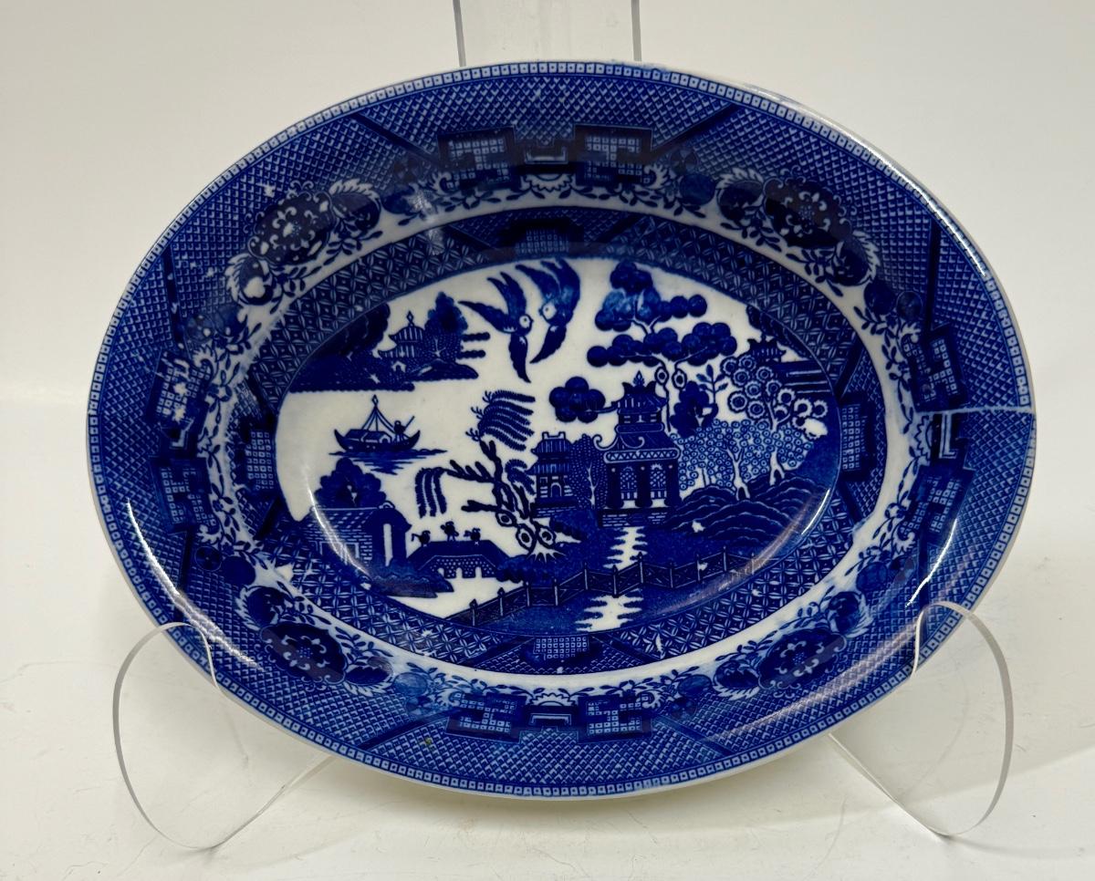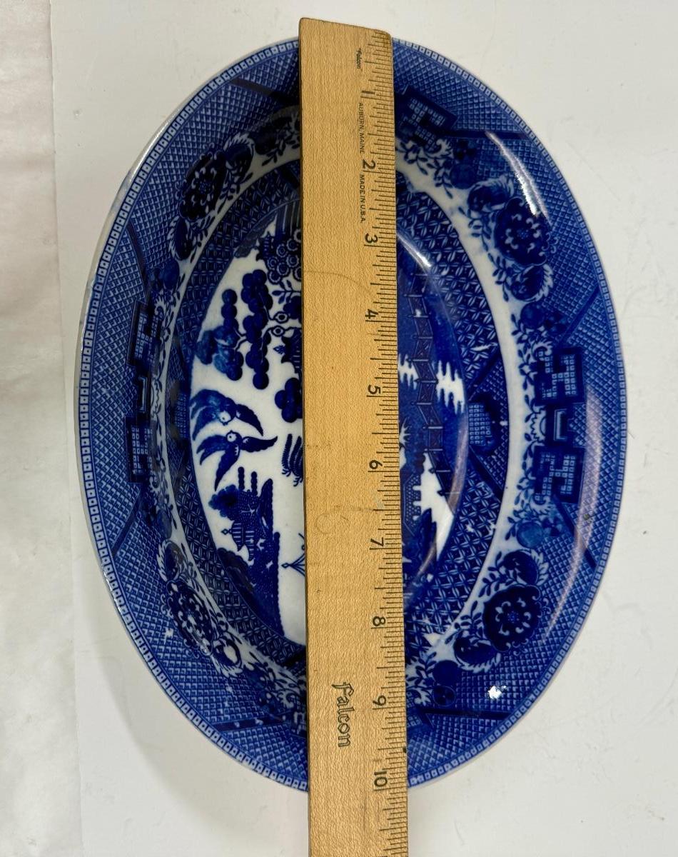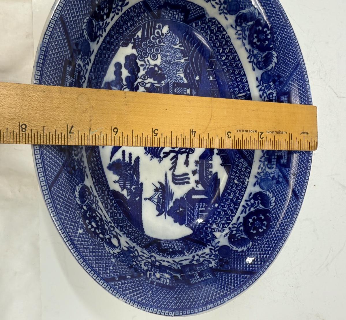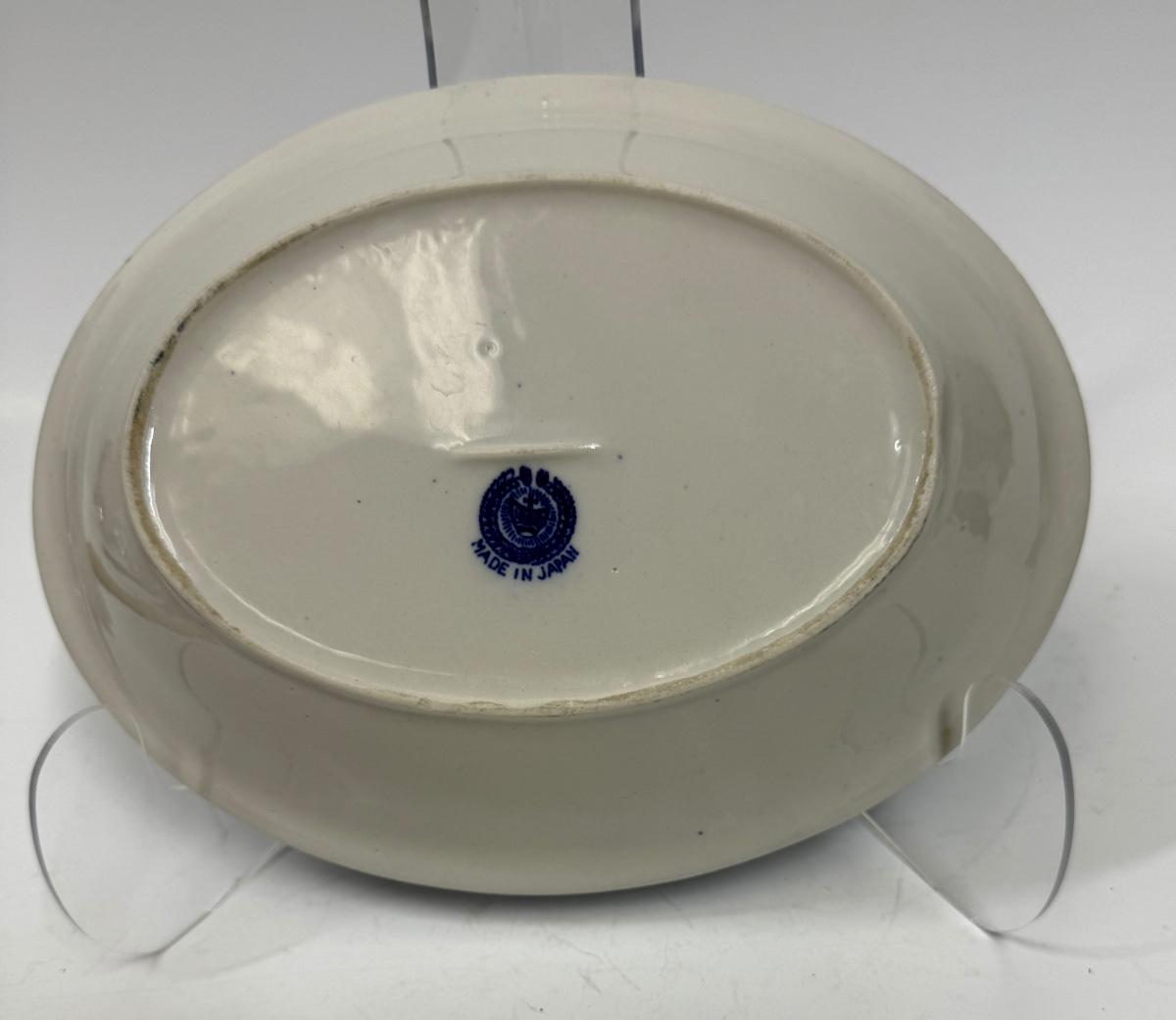 Vintage Blue Willow Made in Japan Oval Bowl Serving Dish Crown & Wreath Backstamp