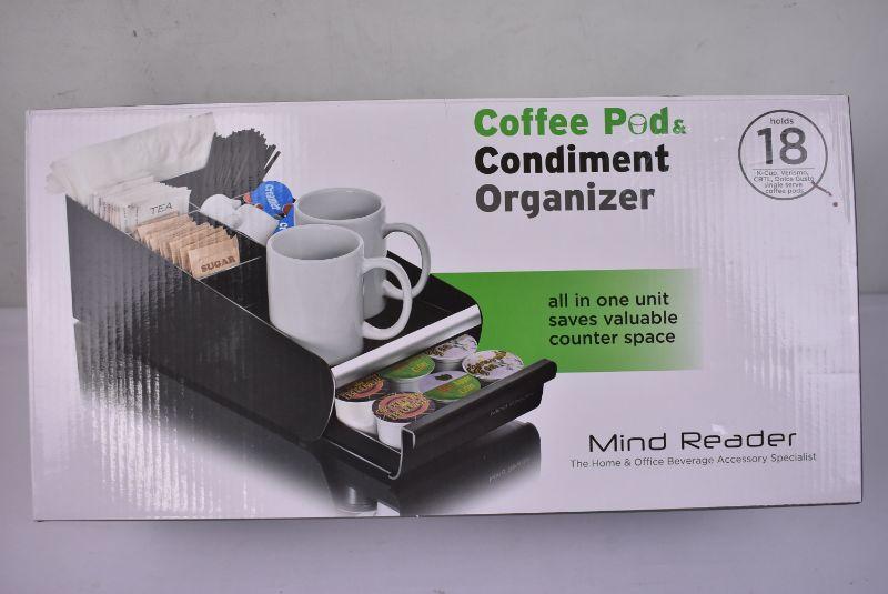 Mind Reader Coffee Condiment Storage Organizer with K-Cup Single Serve Coffee Pod Drawer, Black - New