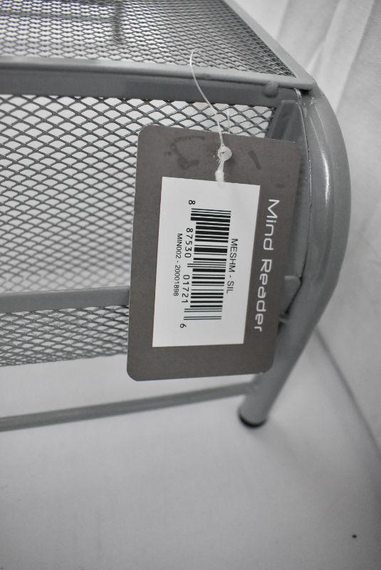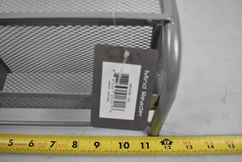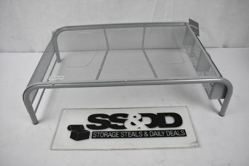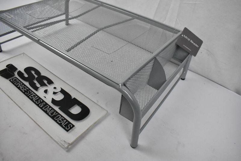 Mind Reader Metal Mesh Monitor Stand, Laptop Riser with 2 Compartments, Silver. Small Tear on back left corner