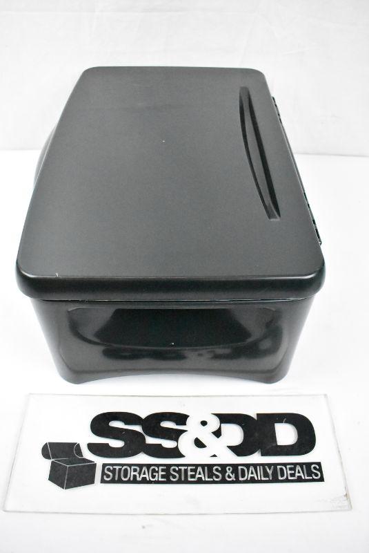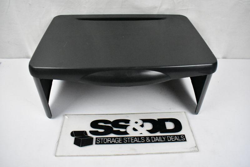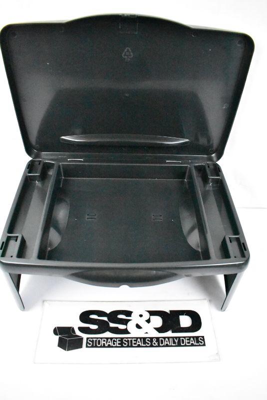 Mind Reader Portable Plastic Folding Lap Desk and Tray with Storage Compartment, Black. Measures 10" L x 11.5" W x 1.5" H