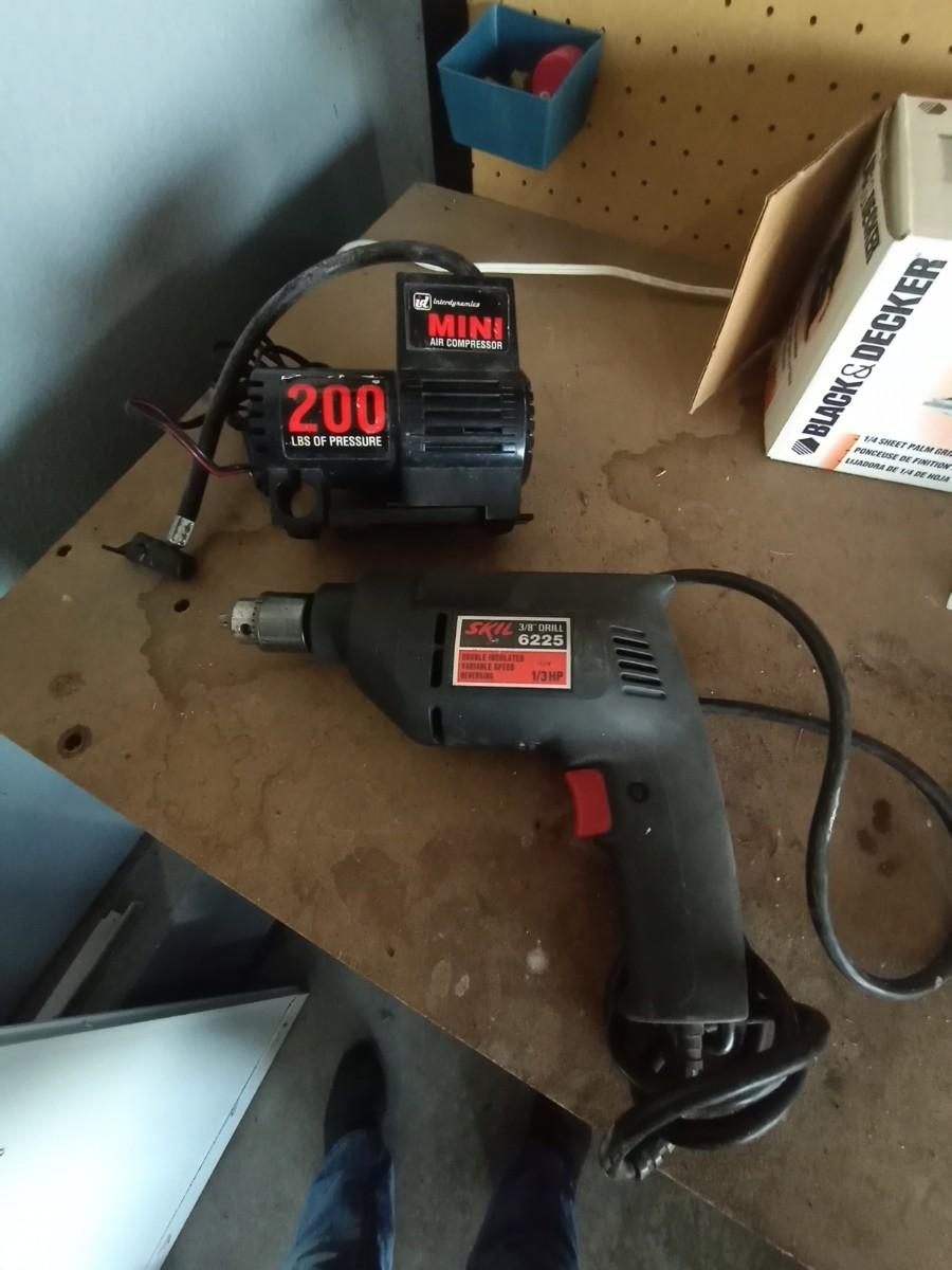 MINI AIR COMPRESSOR AND SKIL CORDED DRILL