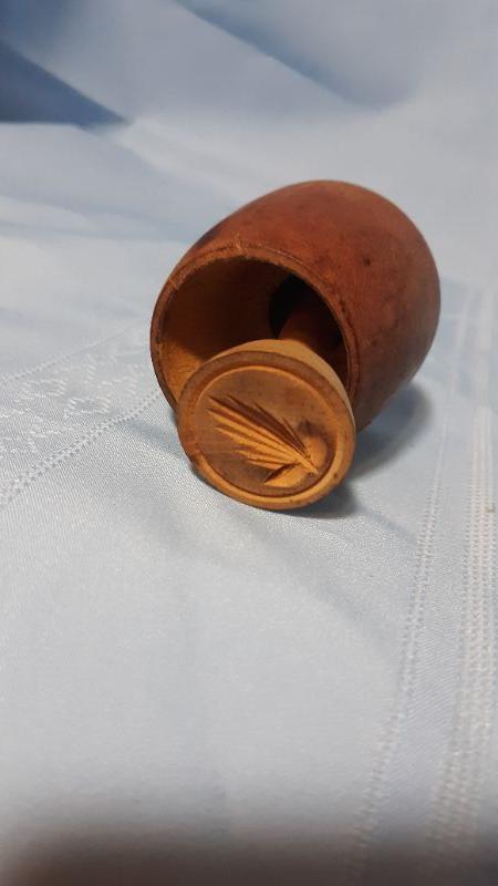 Mini antique wood butter mold, grass imprint, signed GERMANY, body 2"H