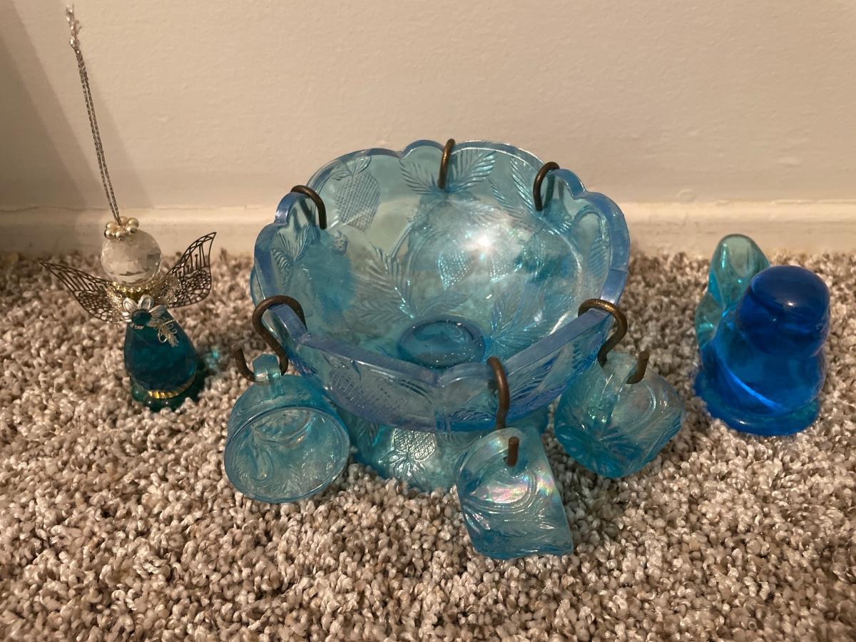 Mini blue punch bowl and bird