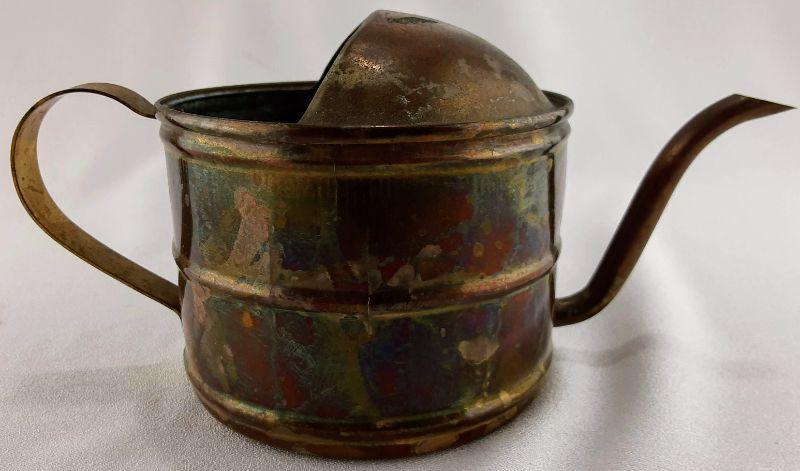Working watering can measures 3.25in tall and 7in across handle to spout