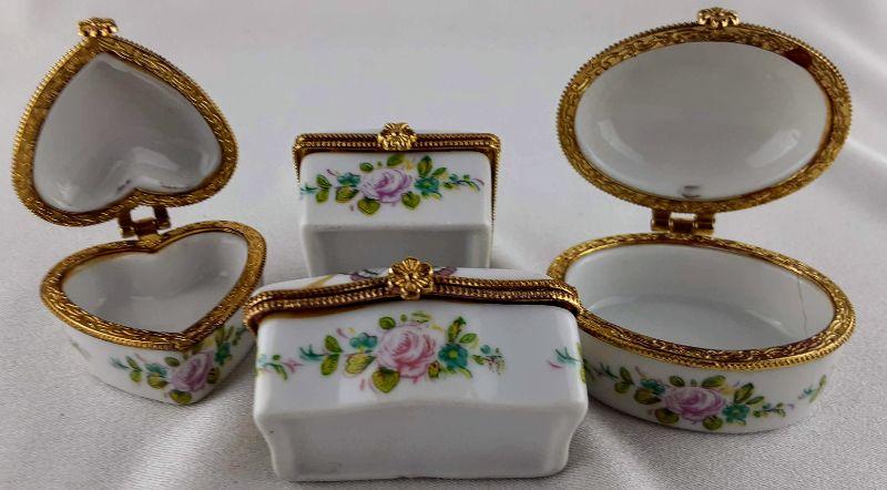 Four porcelain ring or pill boxes that measure around 2in.