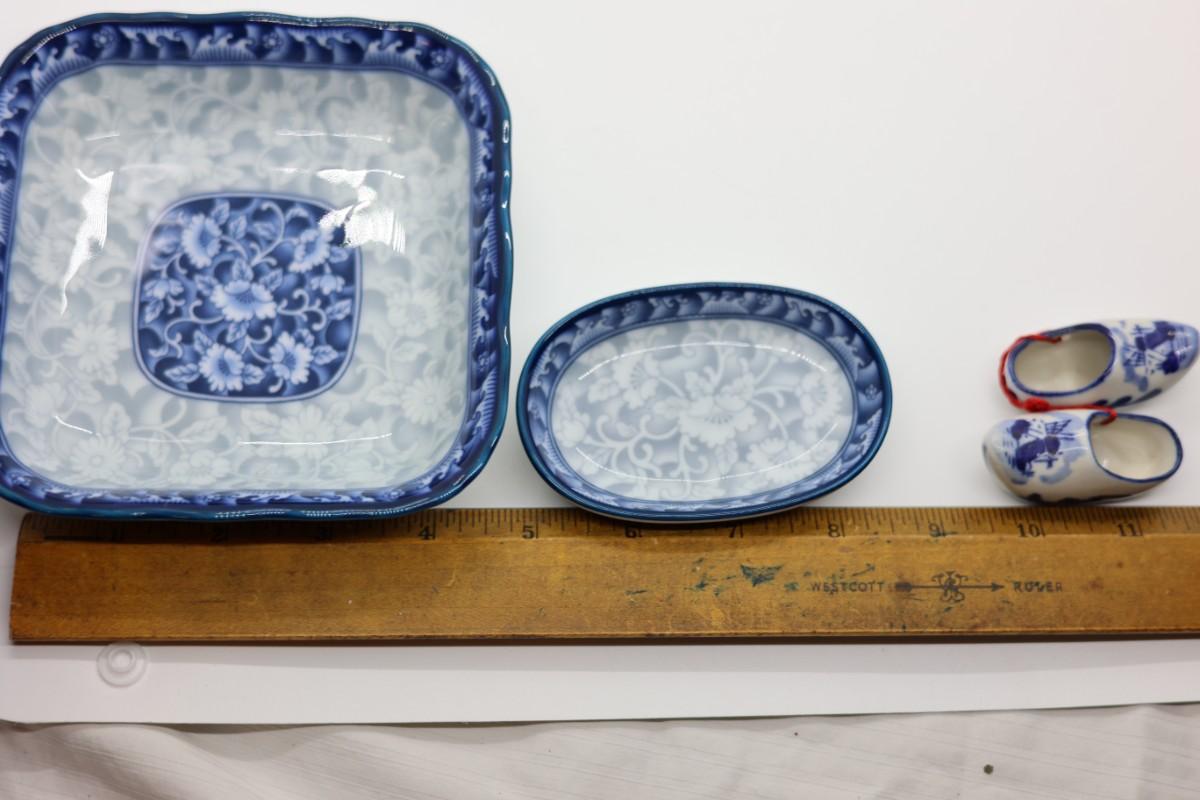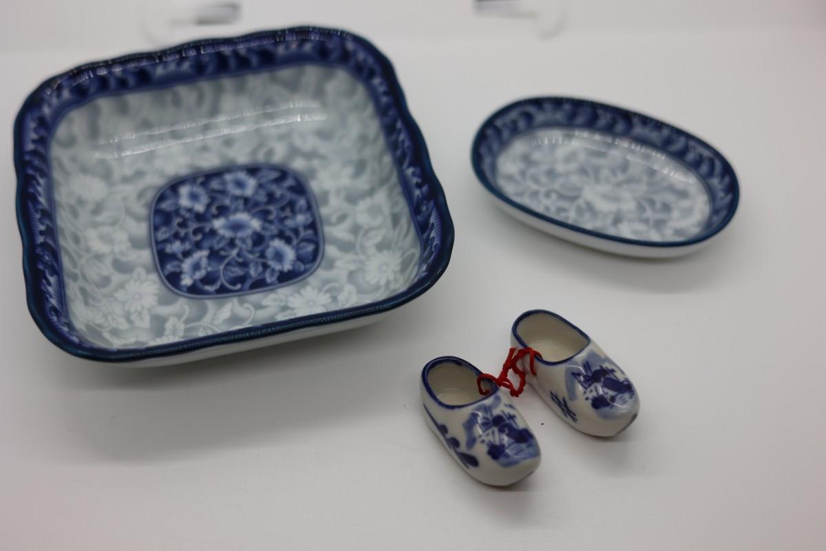 Mini Delft Porcelain Shoes, Blue & White Porcelain Dishes
