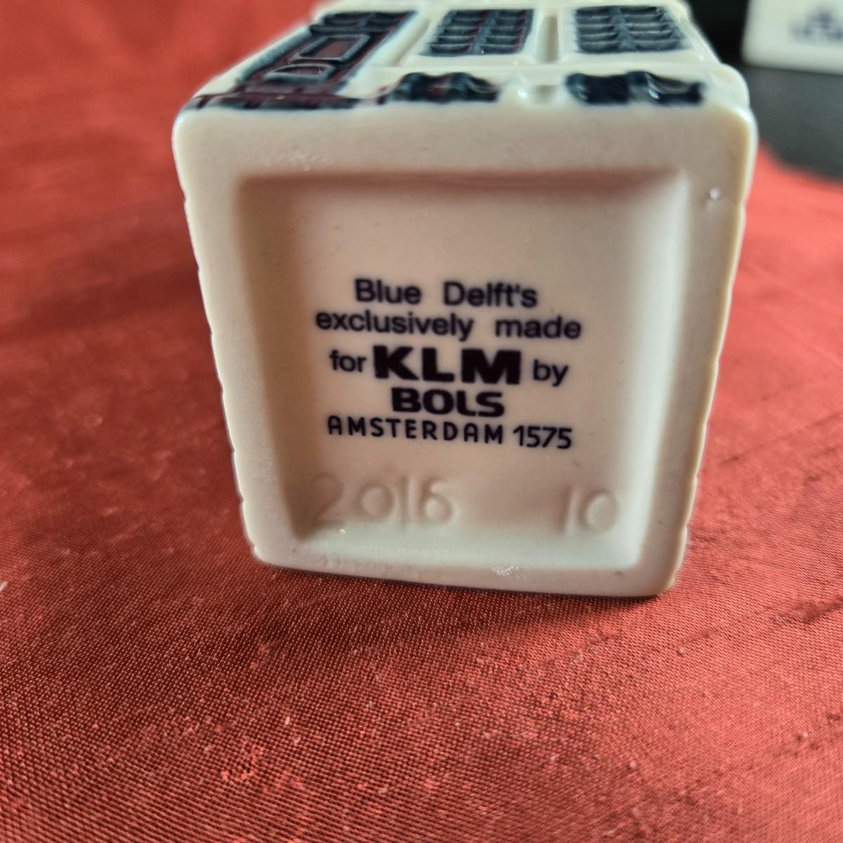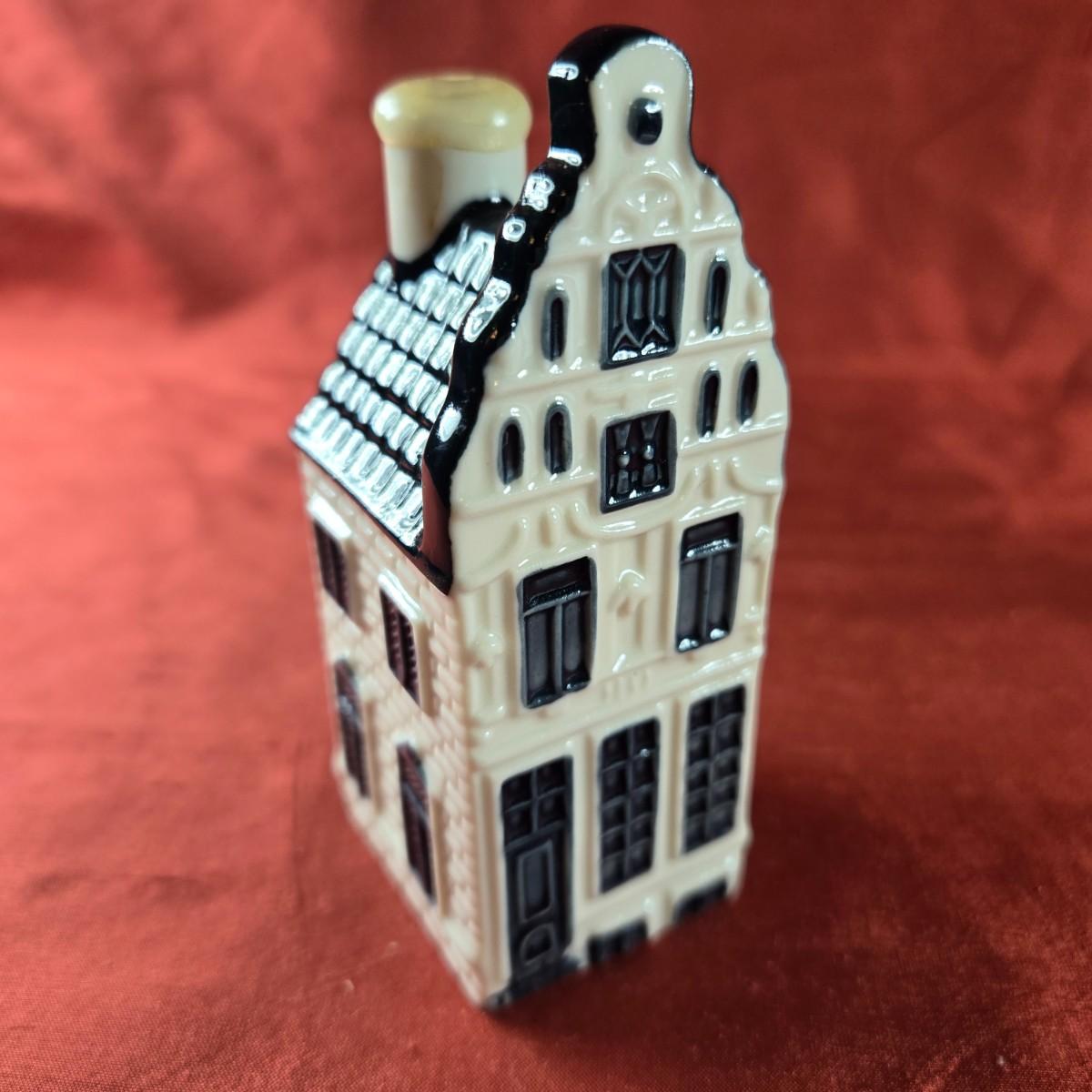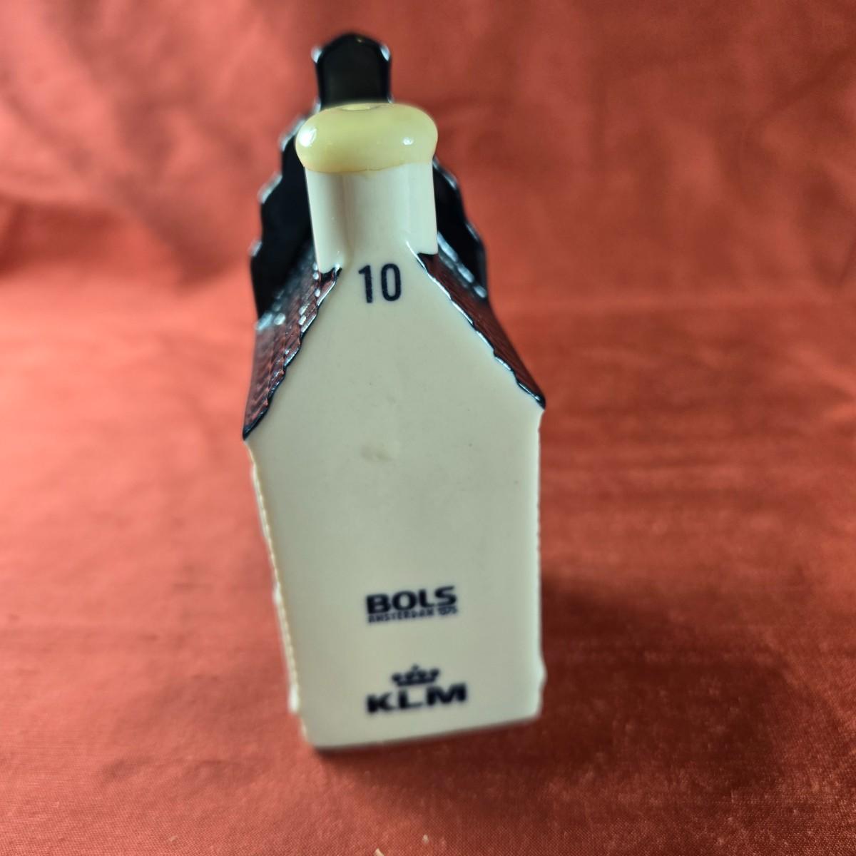 This auction lot is for a Mini Delft House #10 by BOLS for KLM Airlines. The liquid libation is gone but this very collectible house remains in good shape. These Blue Delft mini houses were produced for KLM Airlines to give to World Business Class passengers and held BOLS Gin which has been made in Amsterdam since 1575. This bottle is empty. Until 1994 the houses were issued irregularly. Since 1994, a new house has been presented each year on October 7, the anniversary of KLM's founding in 1919. This house is #10 produced in 1959 - House of the Crowned Turnip. Built in 1615.