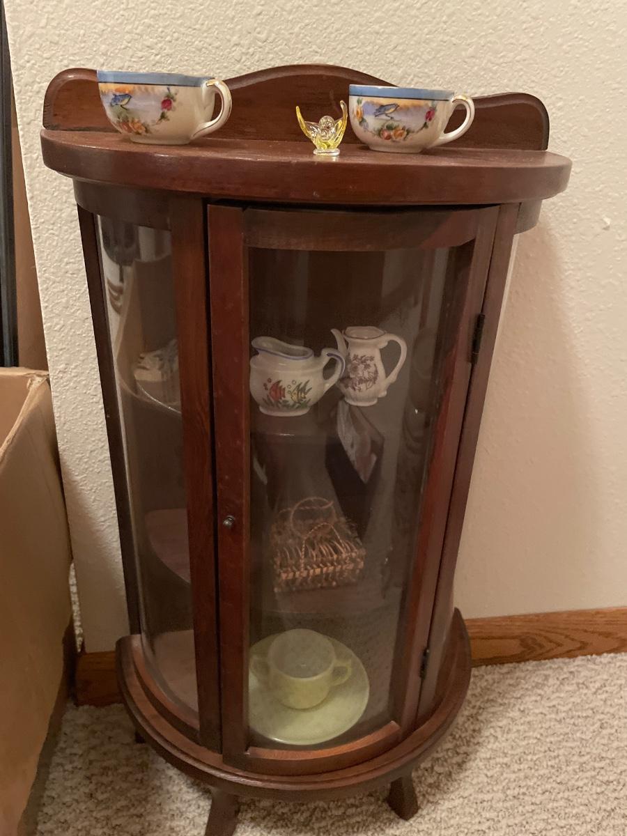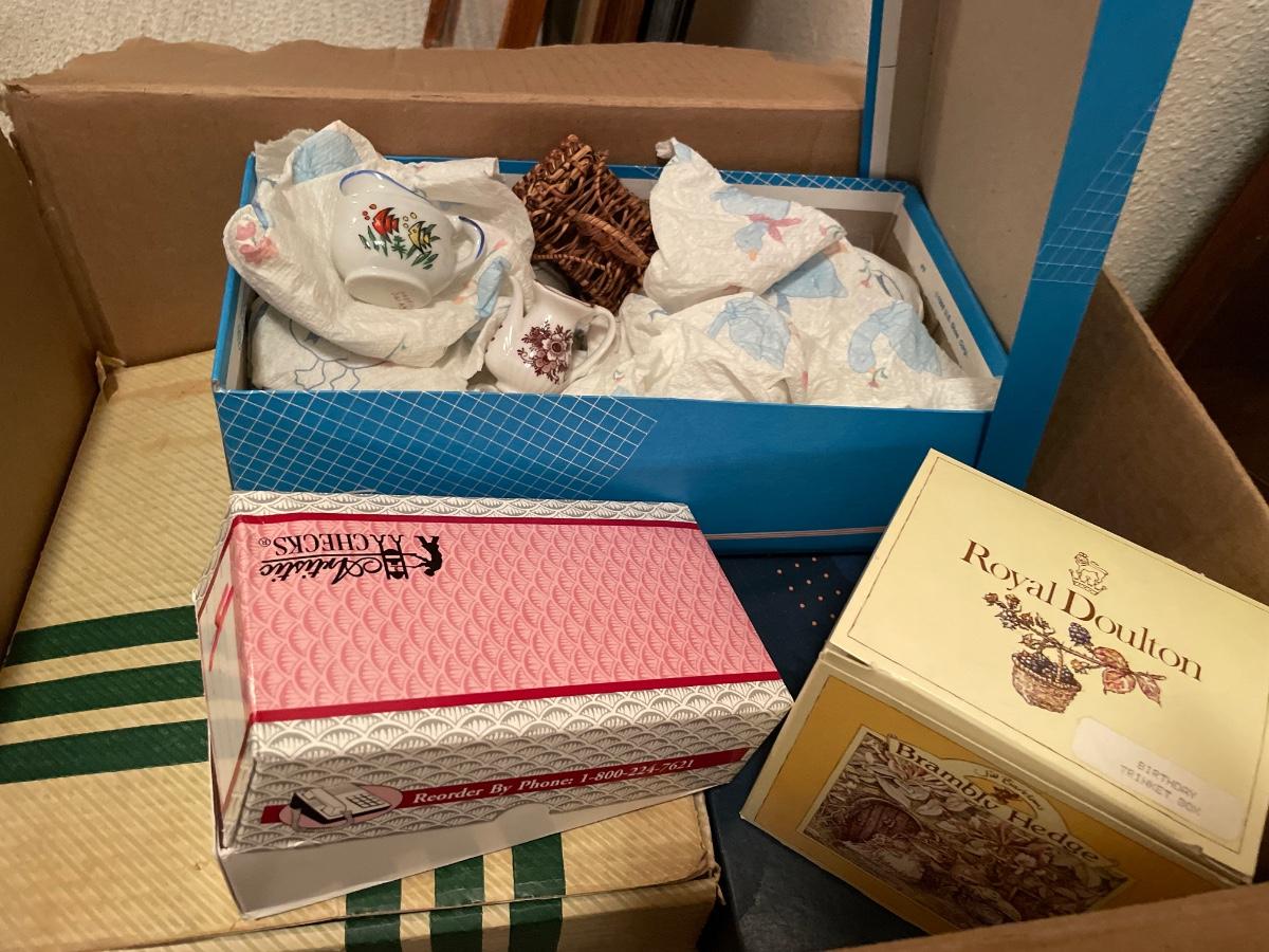 Box full of mini tea cups and saucers