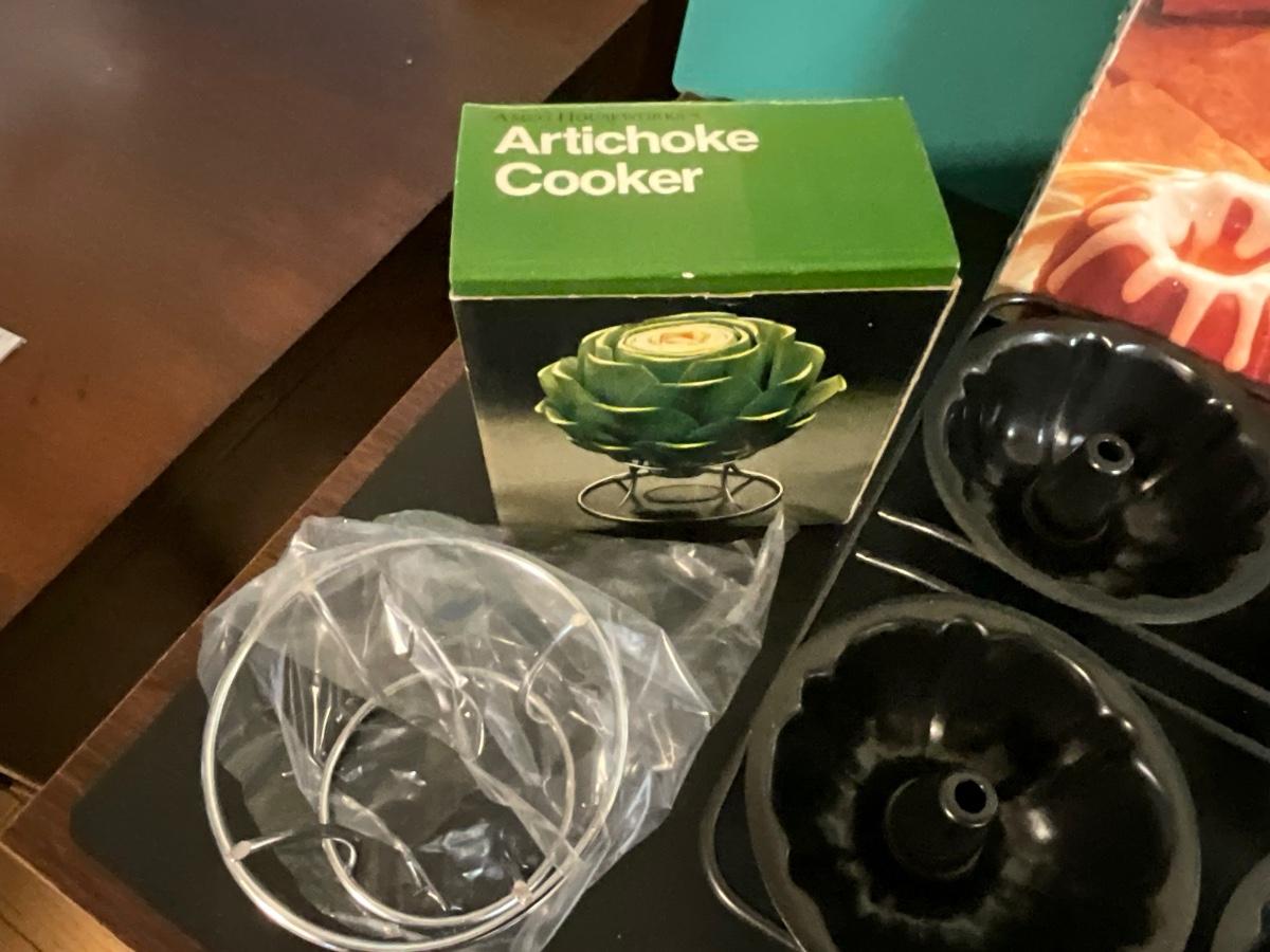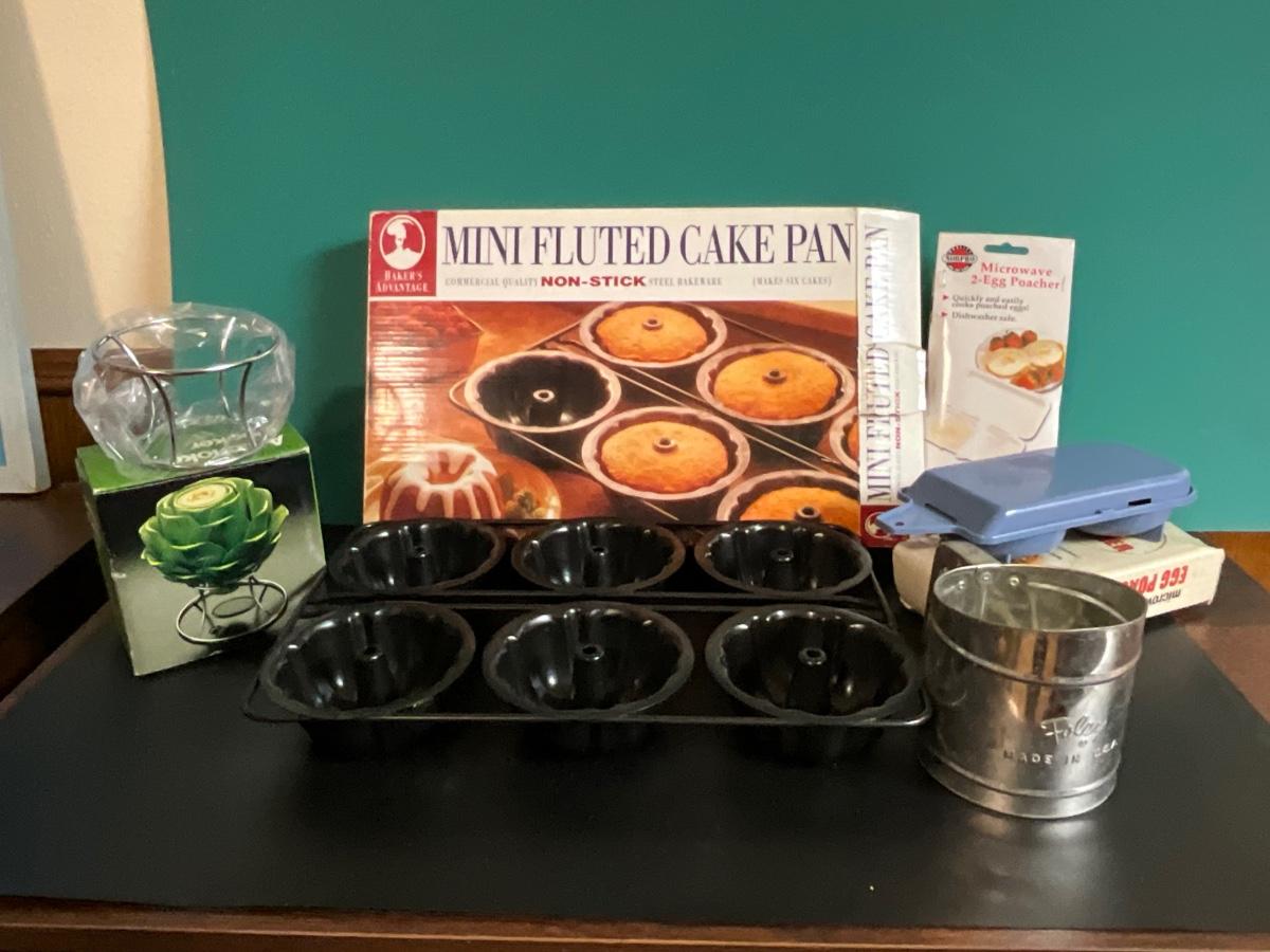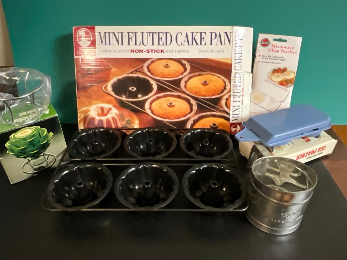Mini Fluted Cake Pan, artichoke stand, egg poacher plus