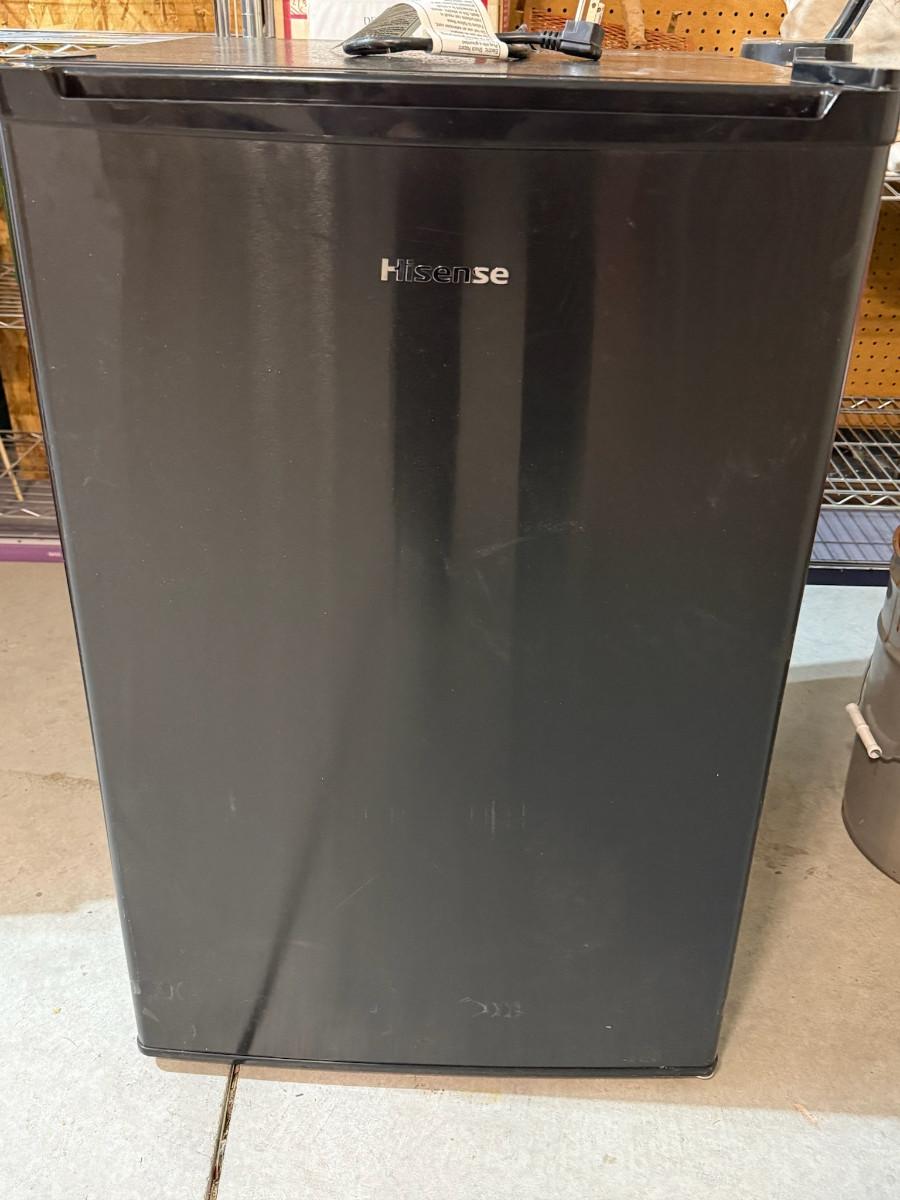 Working order- The Hisense Mini Fridge is a compact and stylish refrigeration solution perfect for small spaces like dorms, offices, or bedrooms. With energy-efficient performance, adjustable shelves, and ample storage for beverages and snacks, this mini fridge combines functionality with modern design, making it an excellent addition to any home or workspace.
