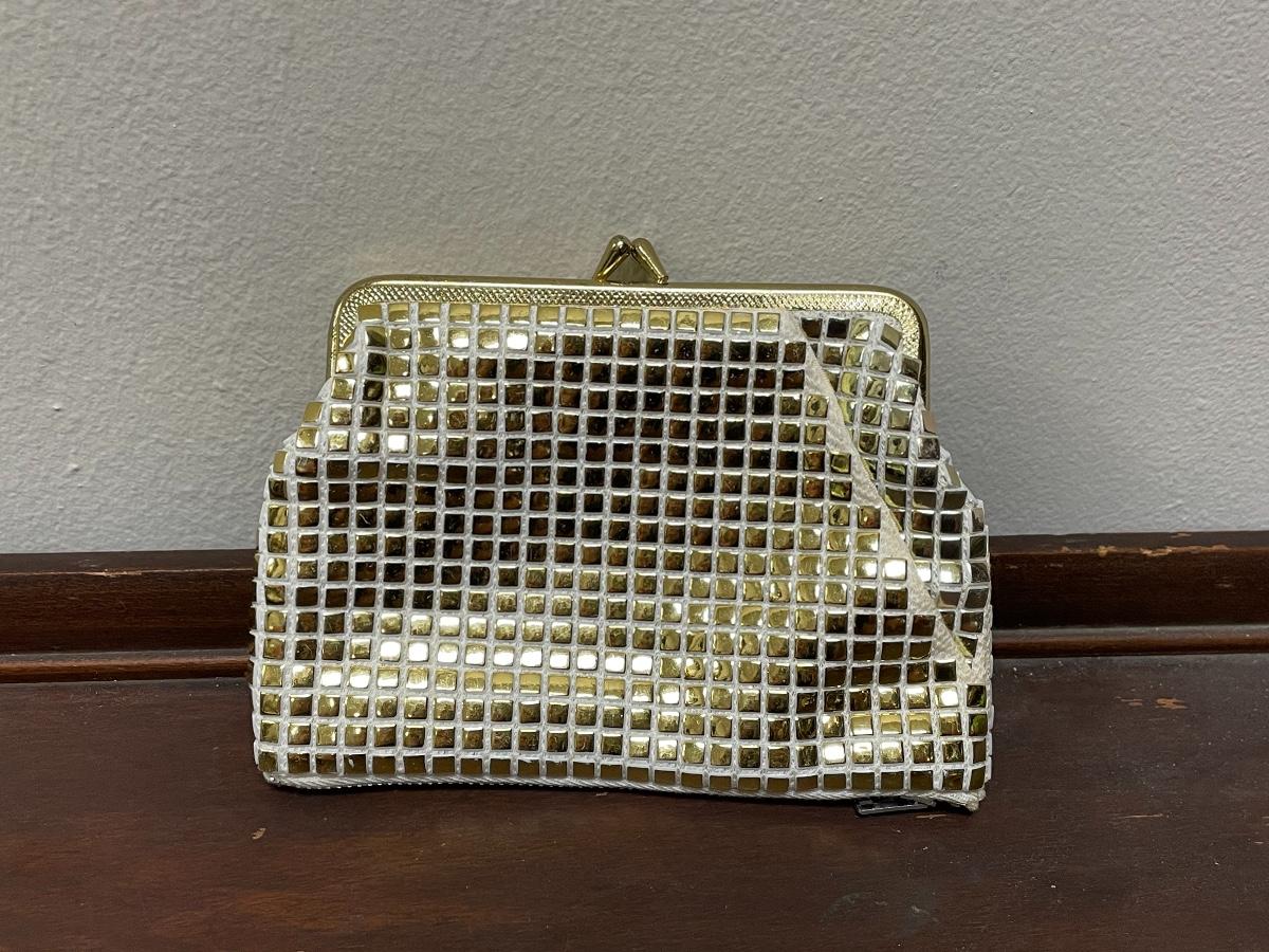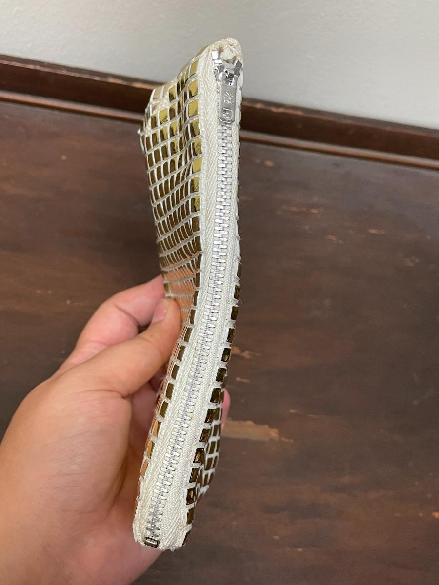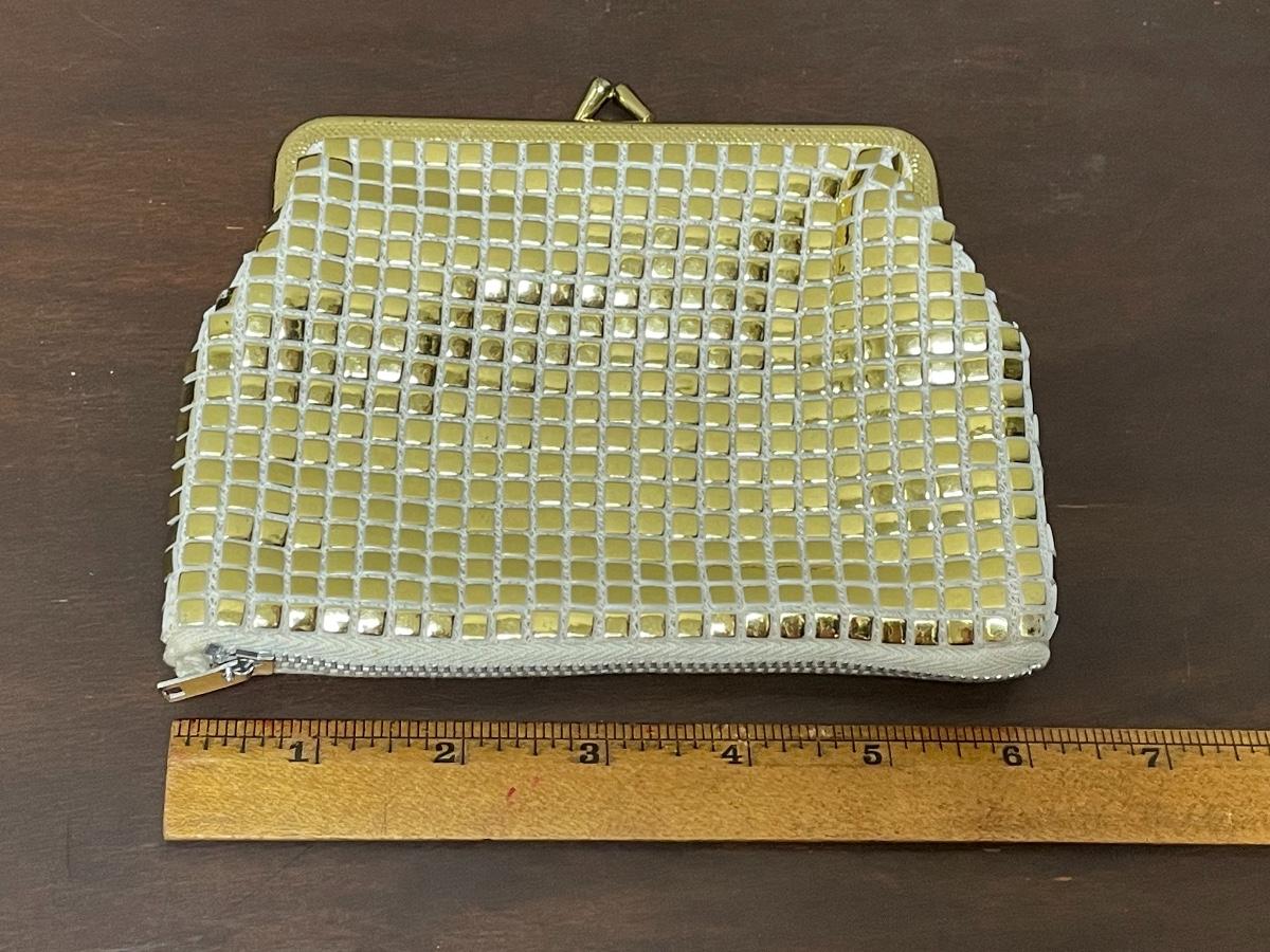 Mini Gold & White Clutch Coin Cosmetic Bag Purse