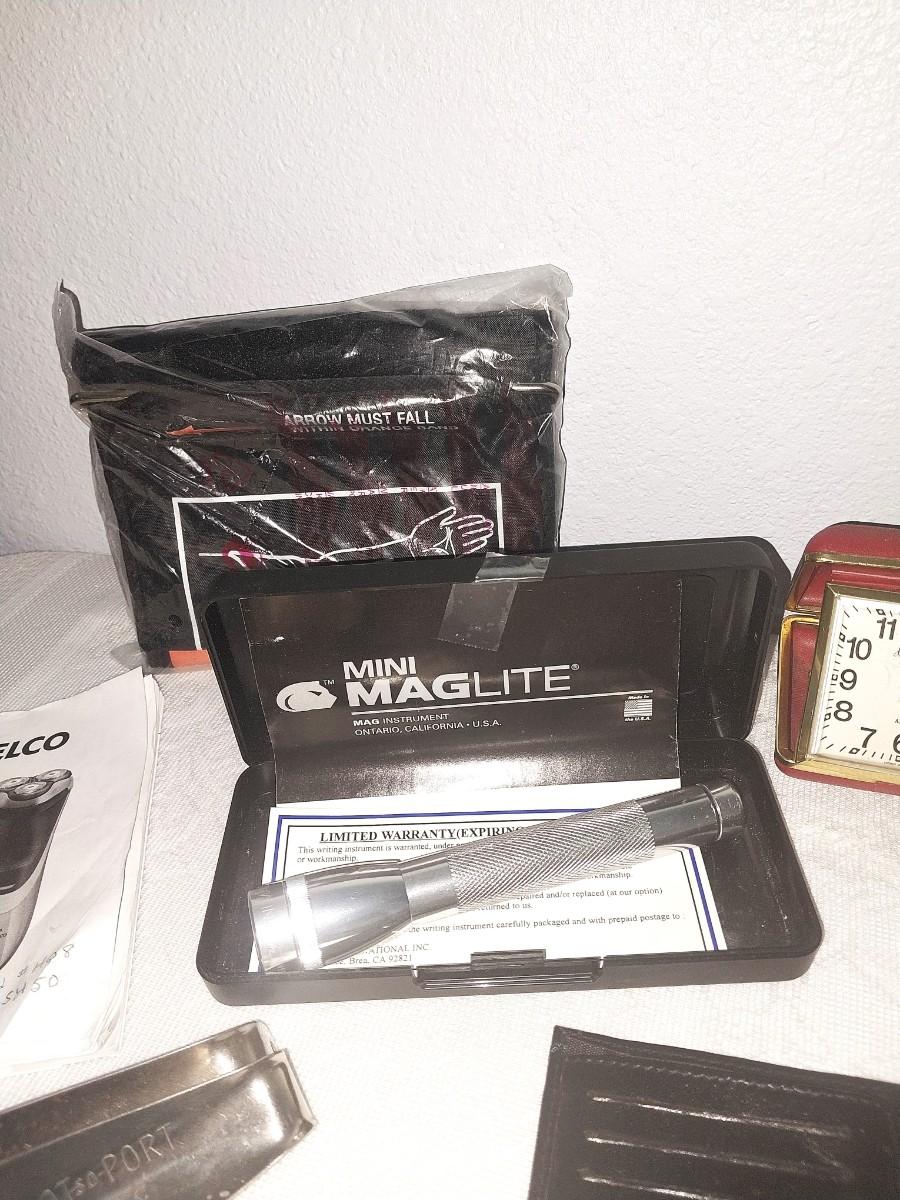 MINI MAGLITE-MENS COLOGNE-SETH THOMAS TRAVEL ALARM-BLACK LEATHER WALLET-MORE