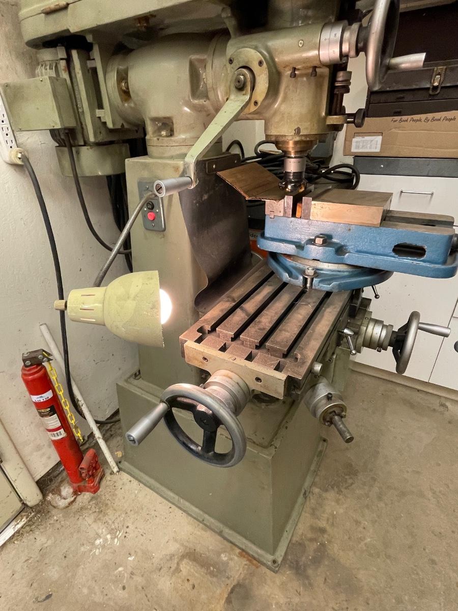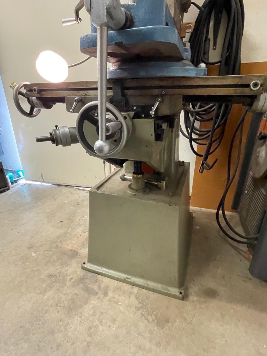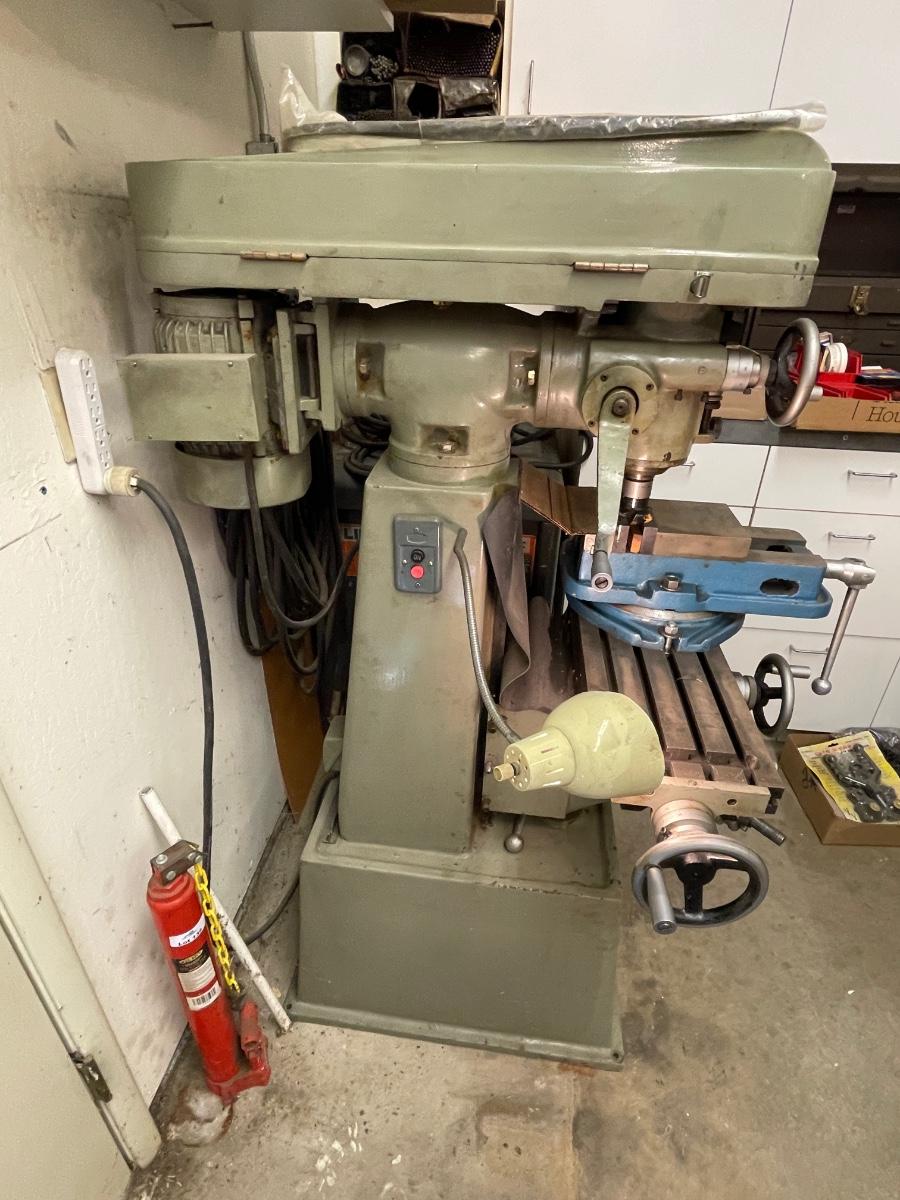Older lots of steel Yamezen Vertical Milling Machine as shown including clamp on pieces & light - Need to schedule pickup HEAVY! This will need to be moved after the rest of the shop has been cleared.