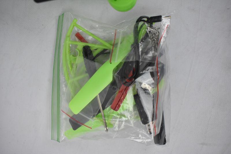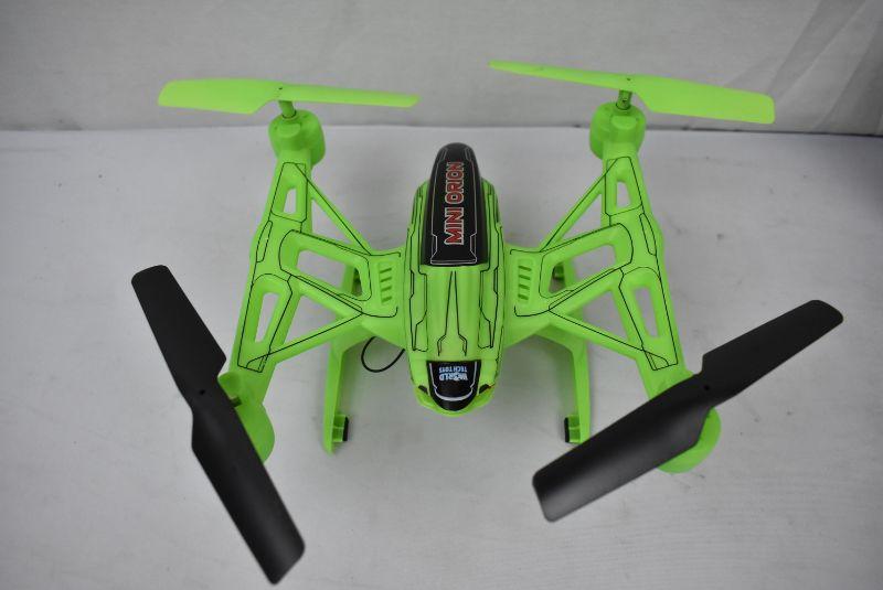 Mini Orion Drone with Live Feed LCD Screen, Bright Green Glow in the Dark, Missing Light Visor, Missing extra battery. Used, Tested, Works