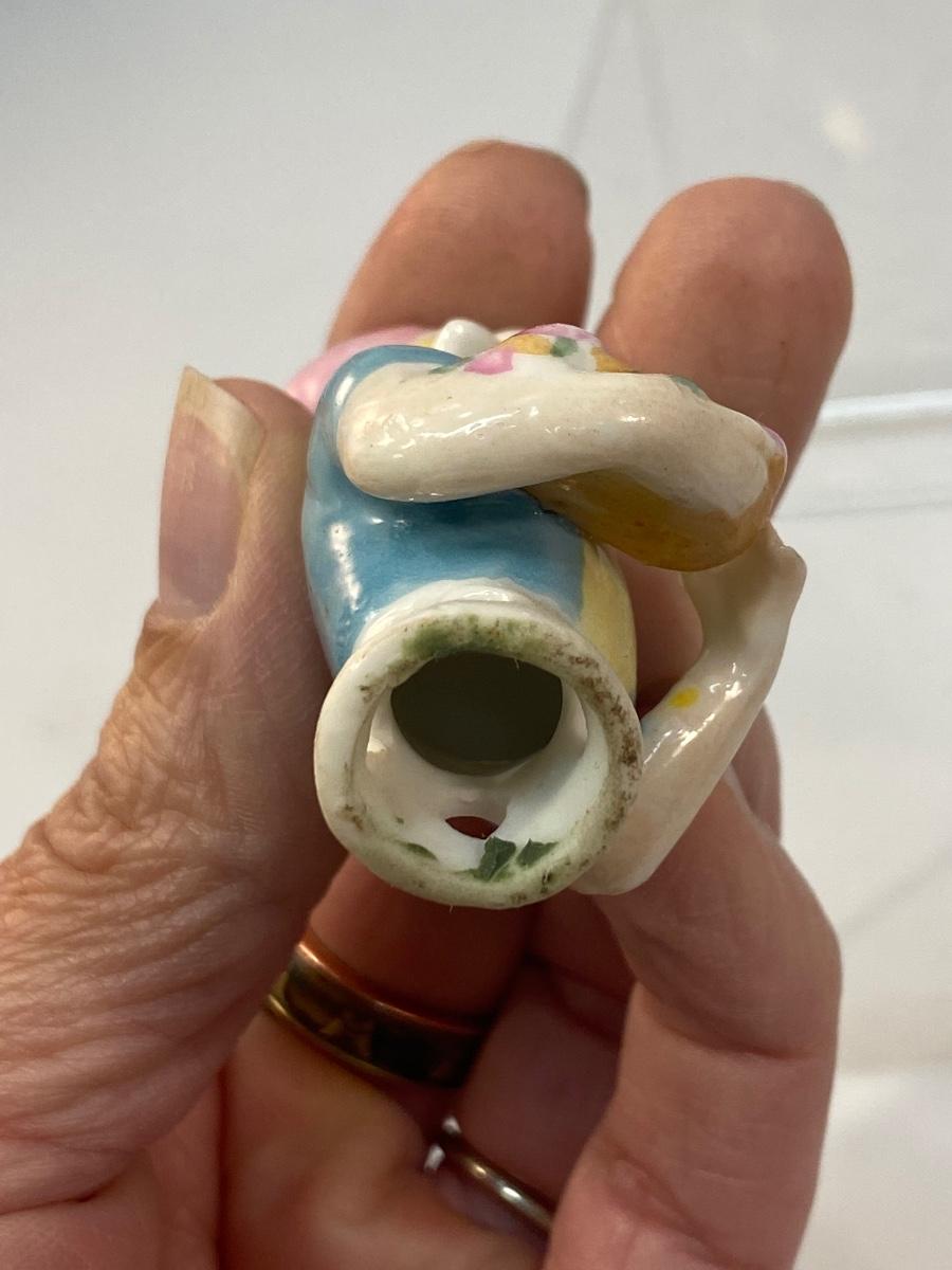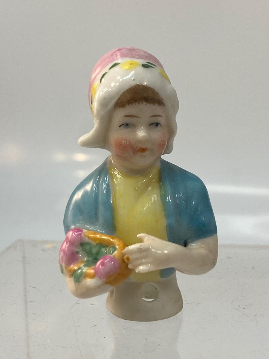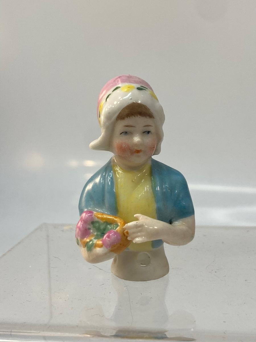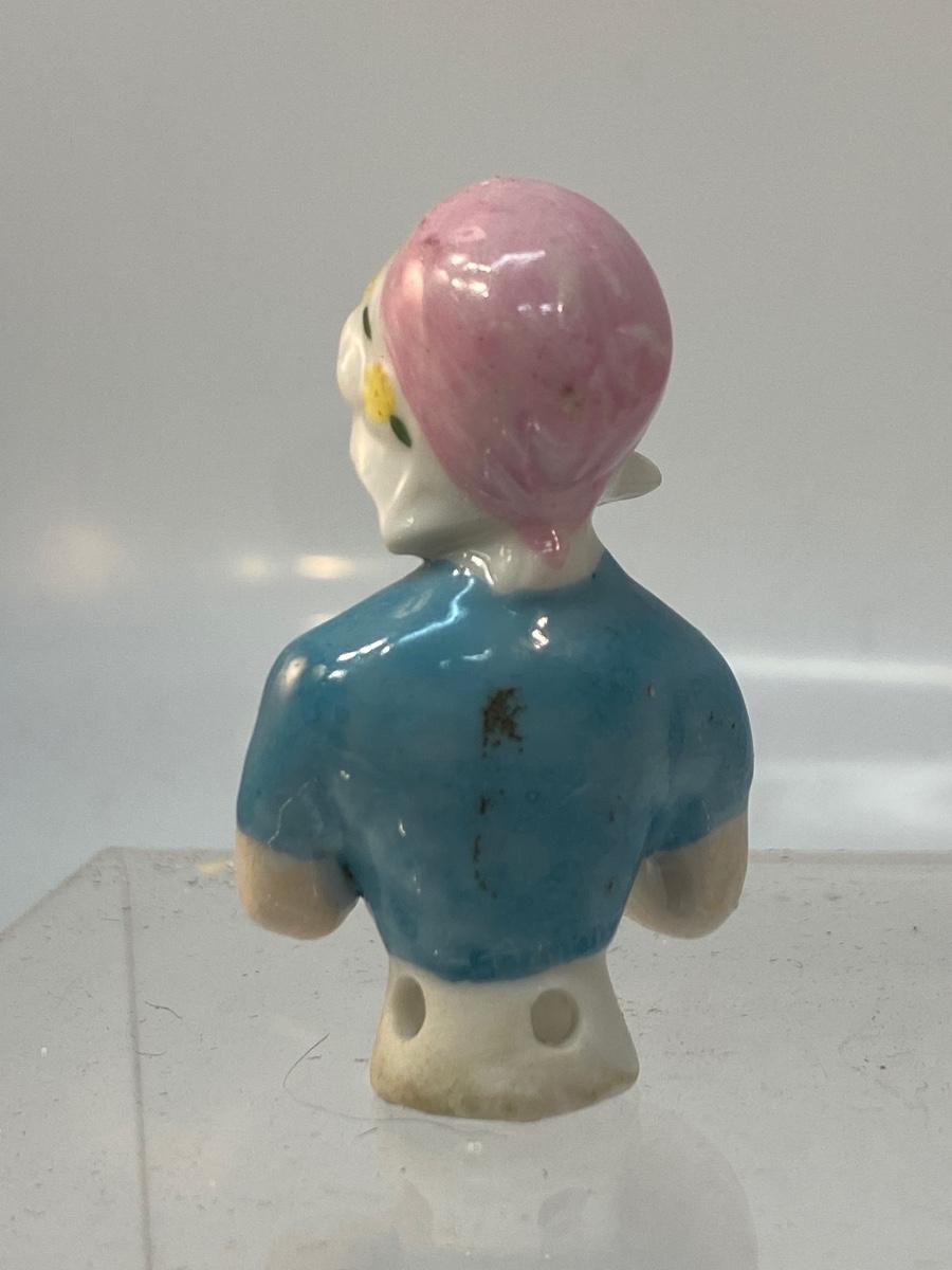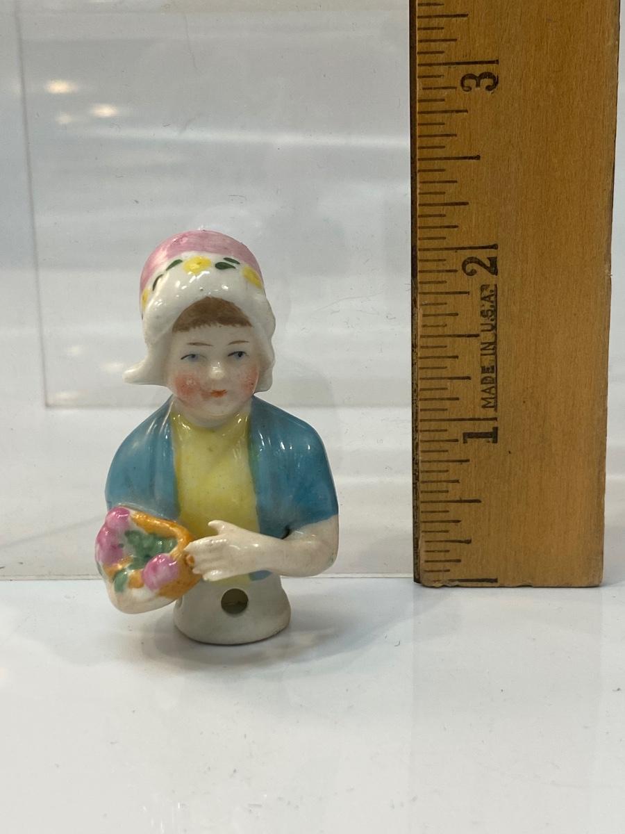 Mini Vintage Antique Ceramic Pincushion Half Doll. Small size only about 2". Good condition, no chips or cracks.