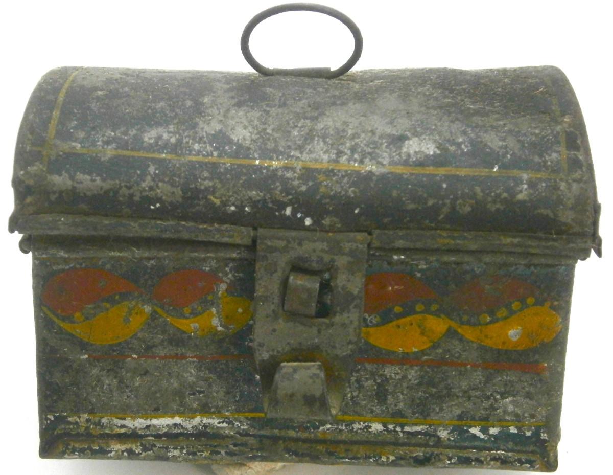 Miniature 19th Century Hand Painted Toleware Box, 3 in. x 2 in. x 2 in.