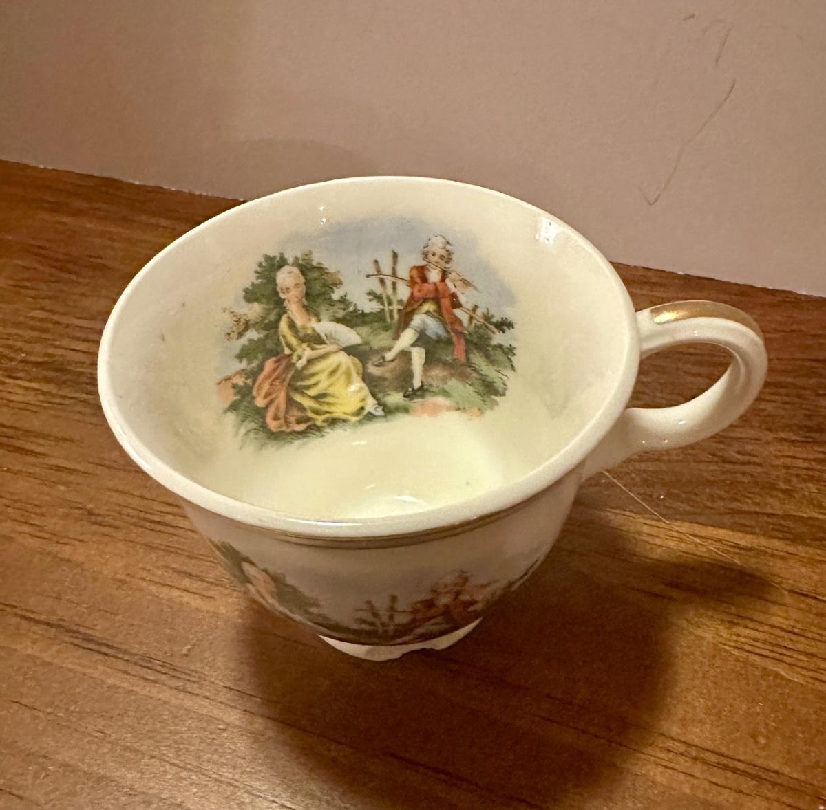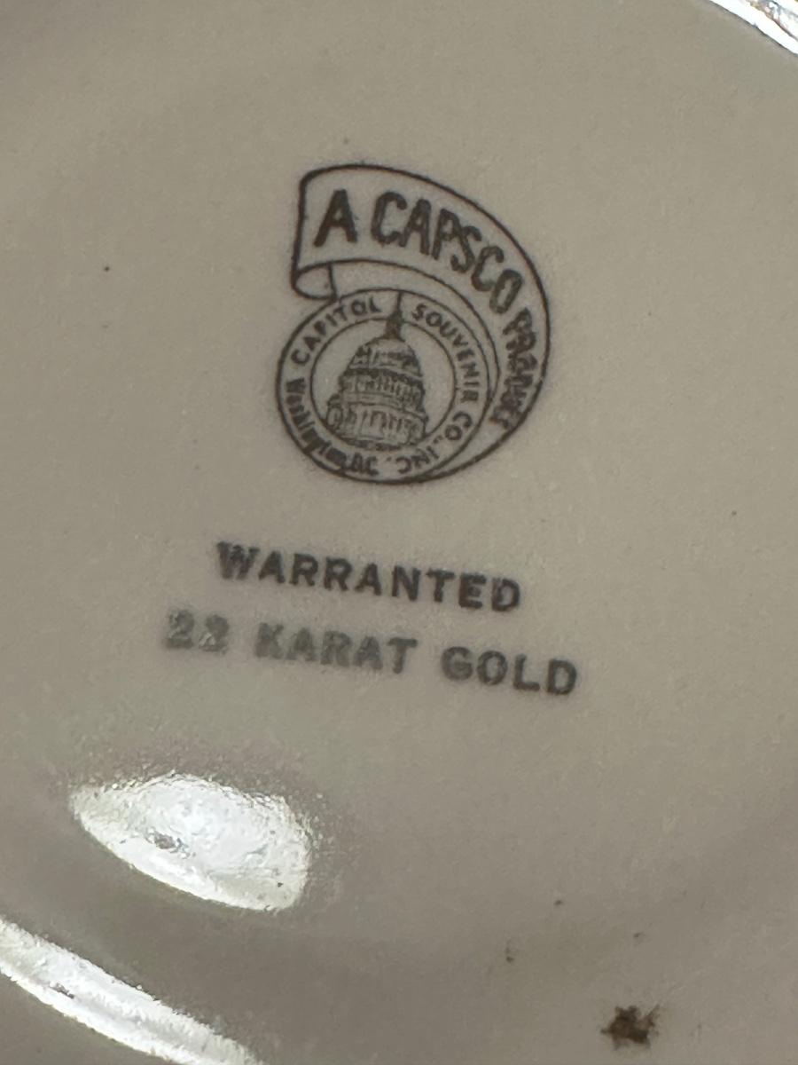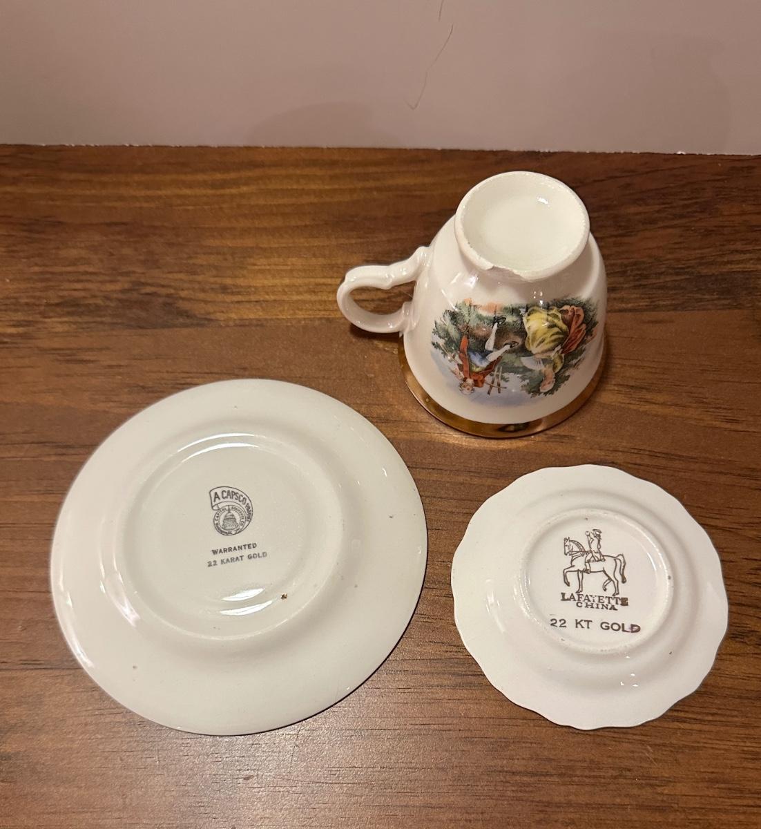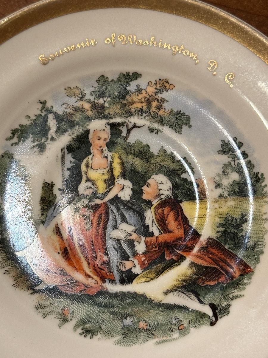 Miniature 2 Saucers and Teacup (with chip) George Washington- stamped on back of plates- see pics