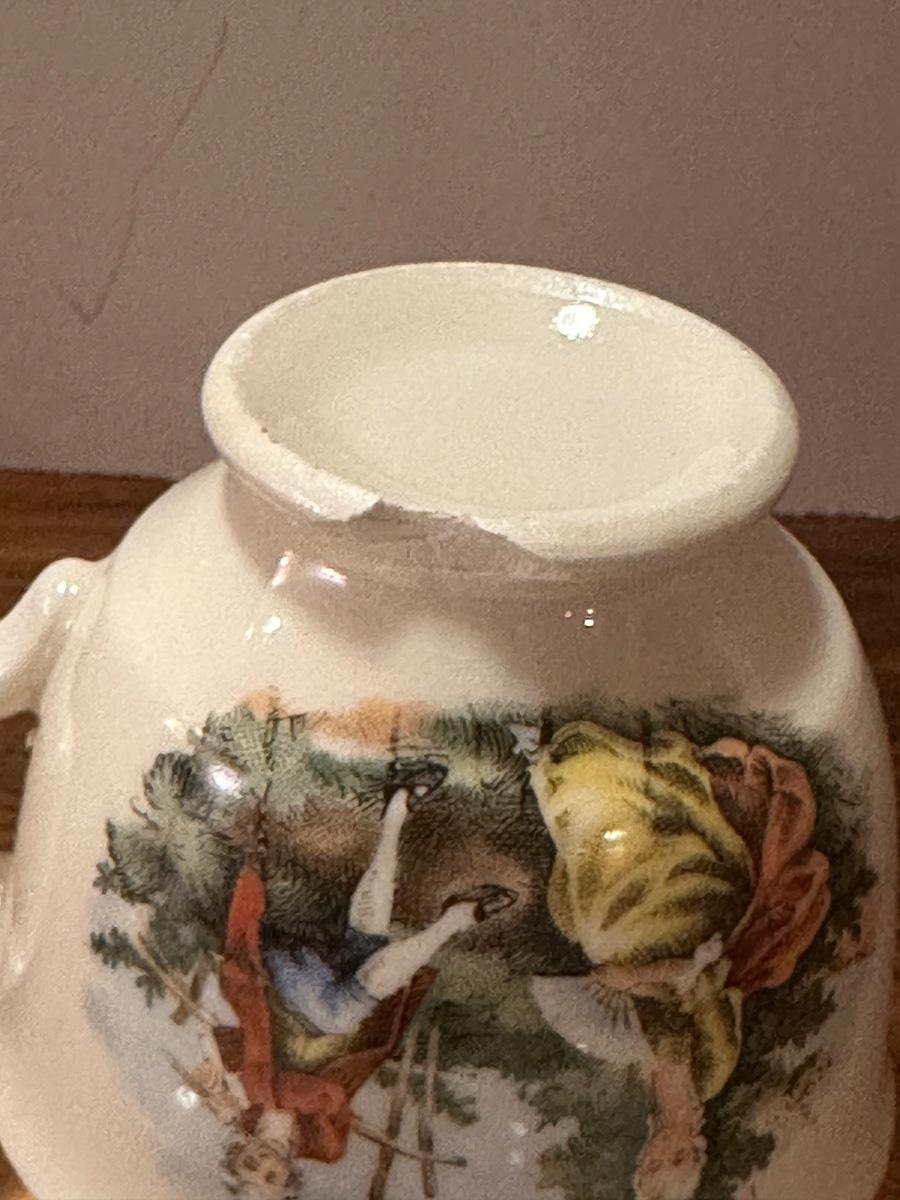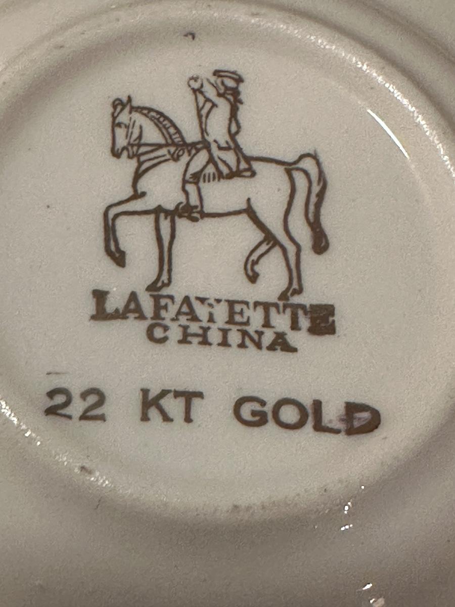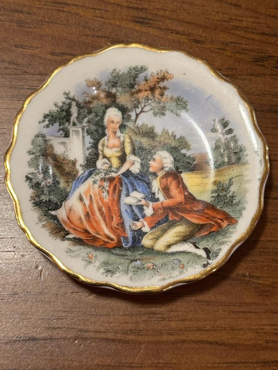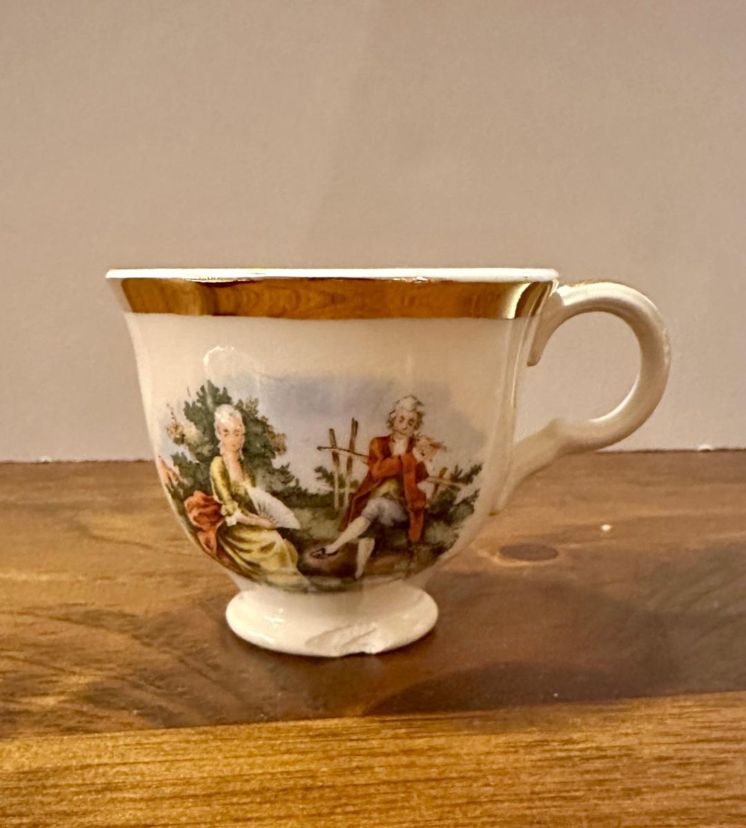 Miniature 2 Saucers and Teacup (with chip) George Washington- stamped on back of plates- see pics