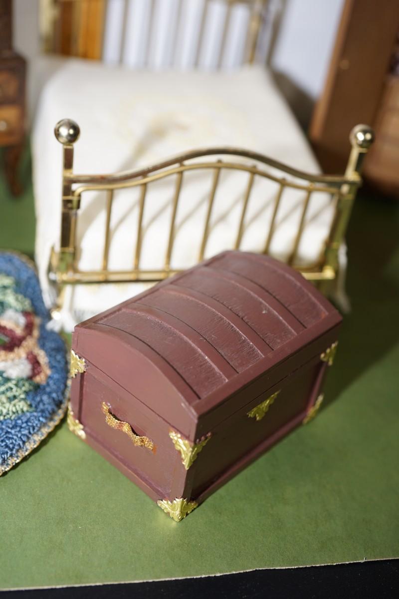 plastic trunk with insert. Not sure if original miniature or a candy container? but looks nice with the rest
