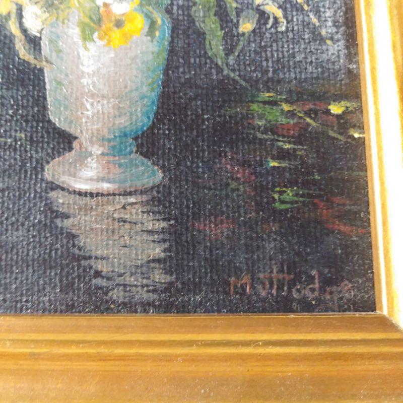 This offering is a pair of well-executed miniature framed oil paintings of Flowers. Very nicely done and both signed by the artist - Muttodge? They are 7-inches tall x 6-inches wide. One of the painting is 1/4-inch taller - so your eyes aren't playing tricks on you. They are ready to hang individually or as a set.