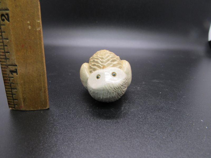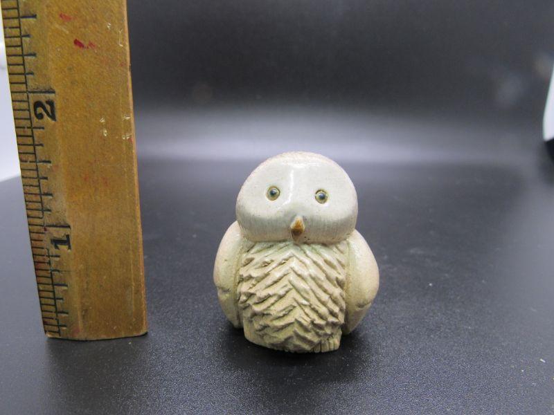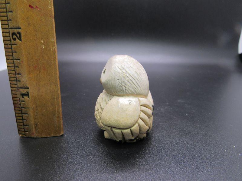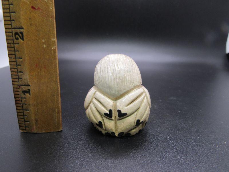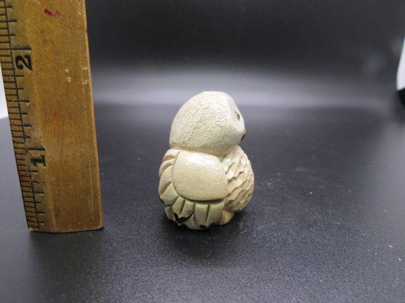 Vintage carved stone owl figurine. Miniature size, about 1.5". Signed on the bottom. #001-0033