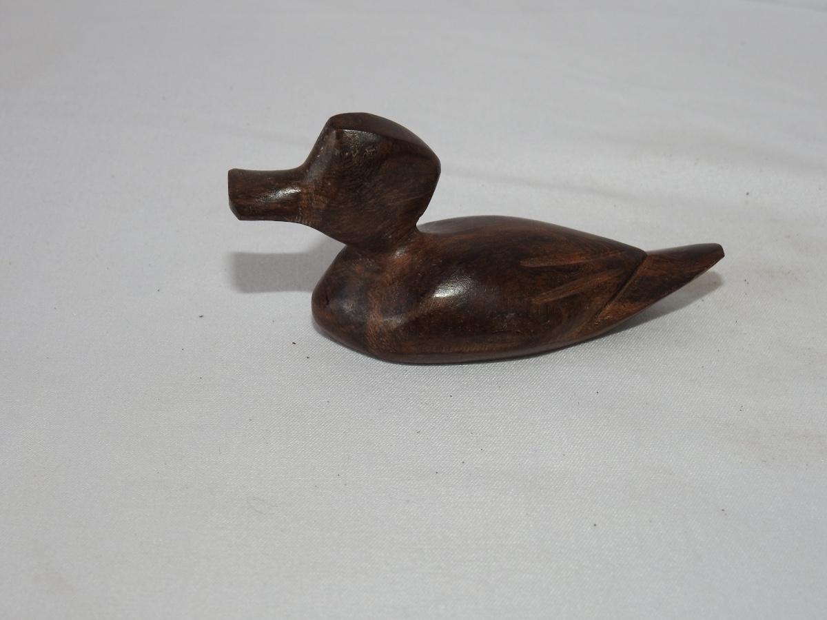 Miniature hand carved walnut wood duck .