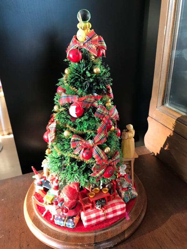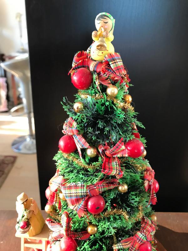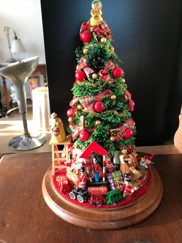 Miniature Christmas Tree on Walnut Base w/ Decorations [1142]