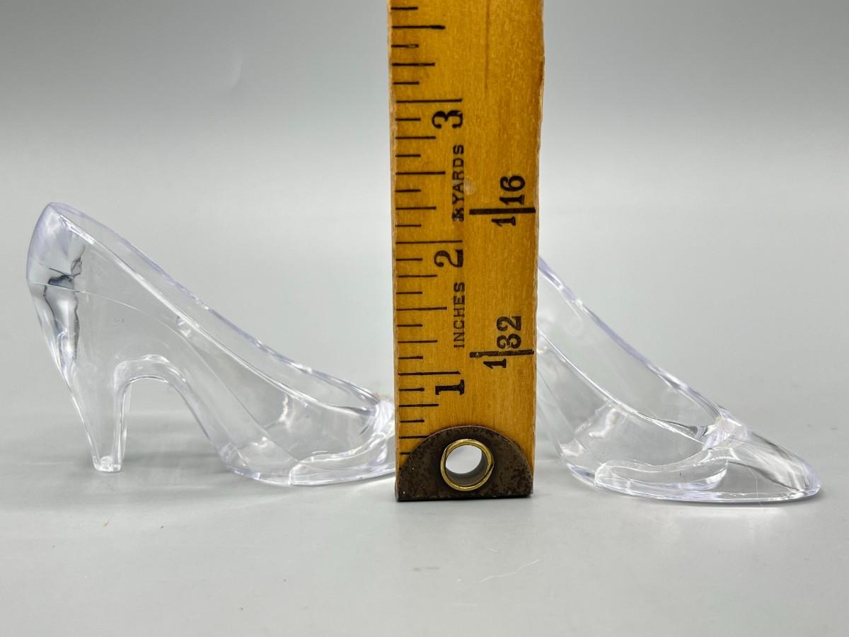 Miniature Clear Plastic High Heel Shoes. Great for crafting or display.