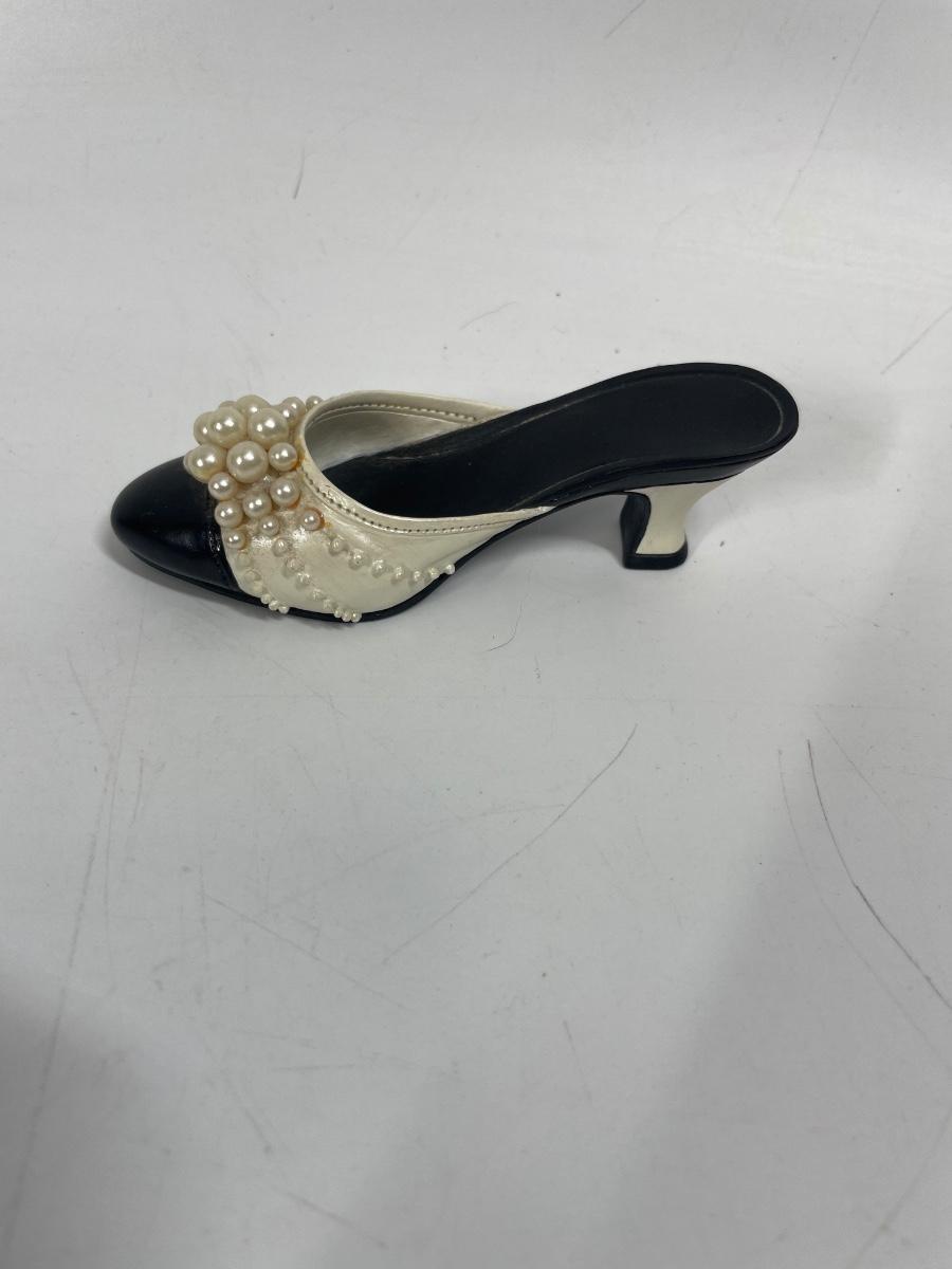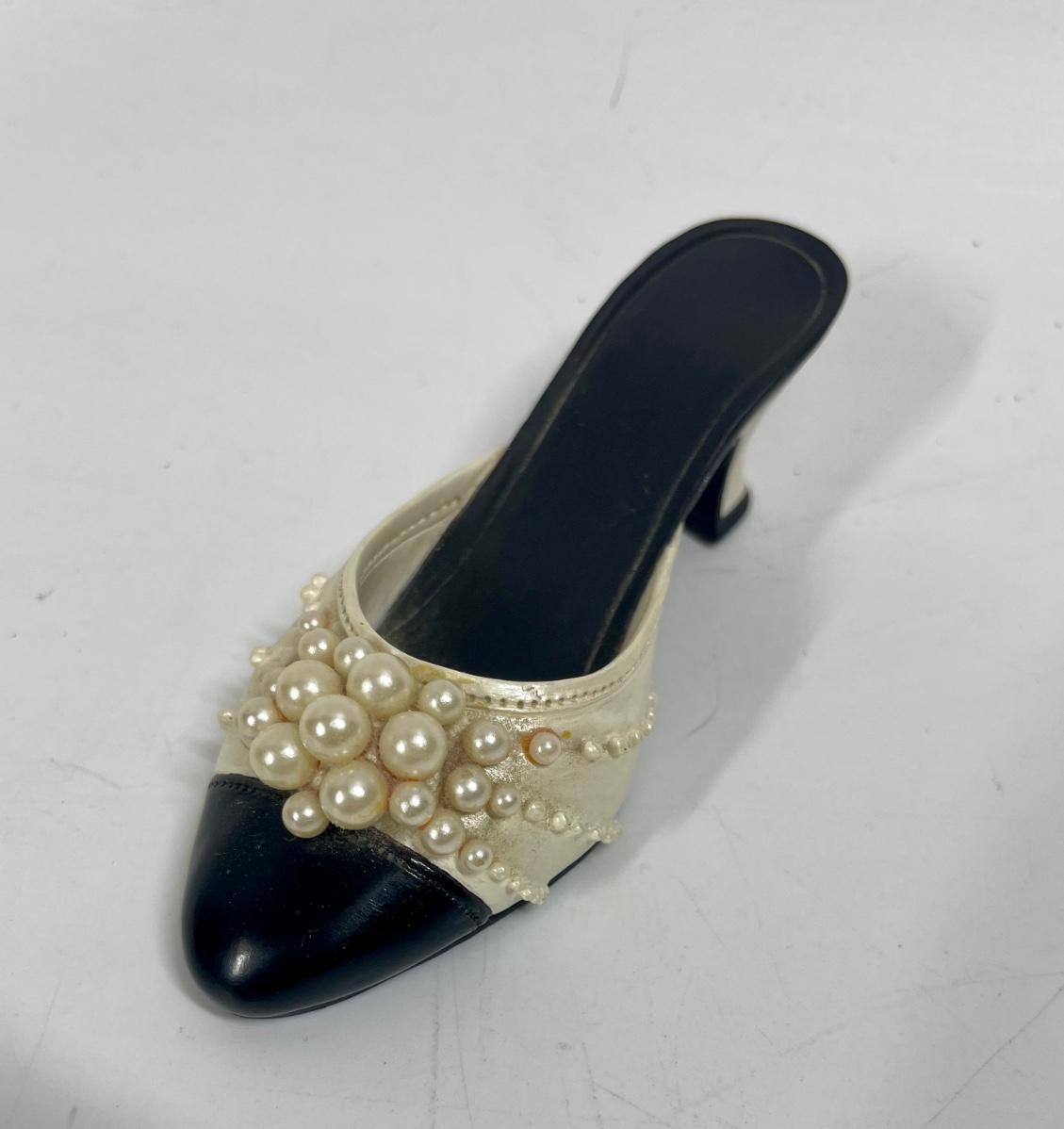 Women’s pearl mule collectible shoe. Approx 4” long.