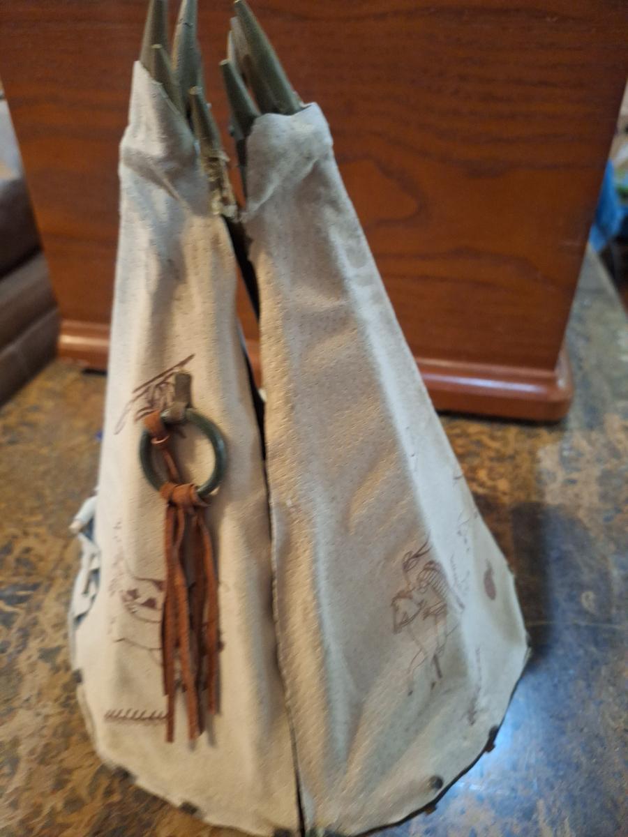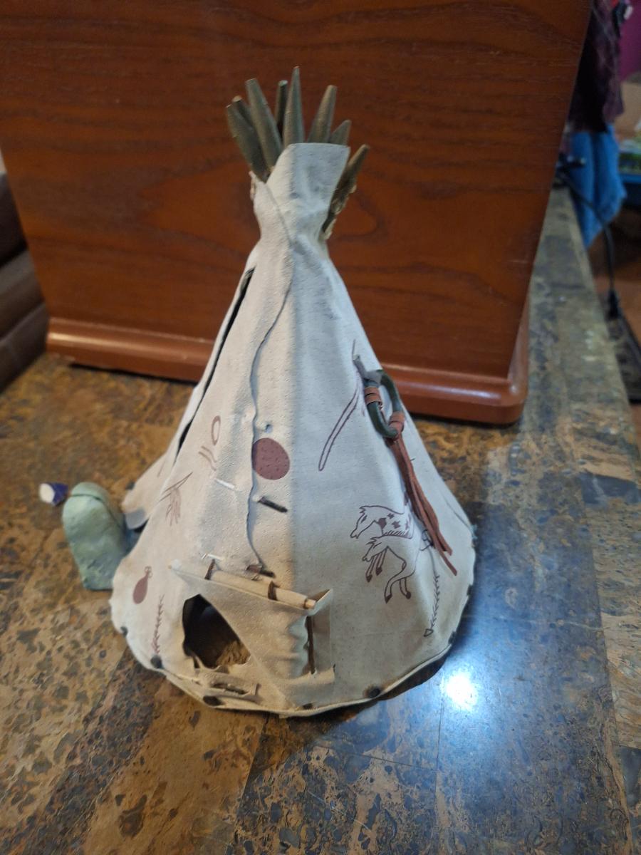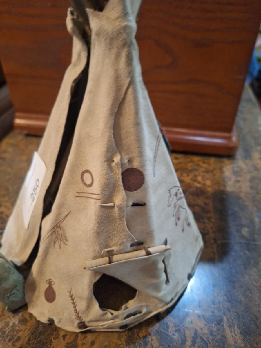 miniature decorative teepee collectible- opens to display people inside