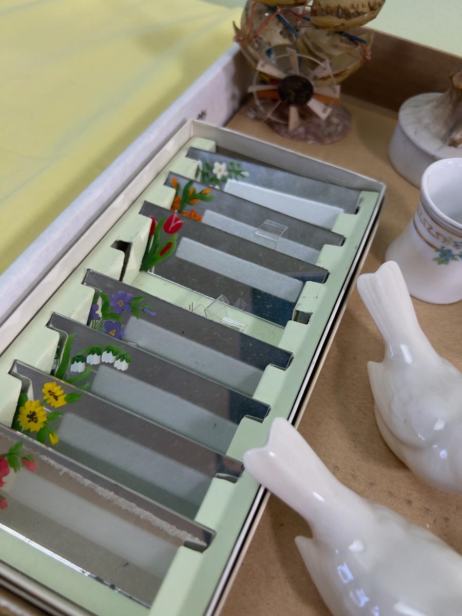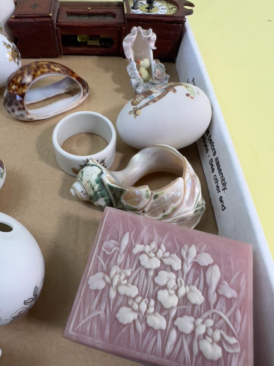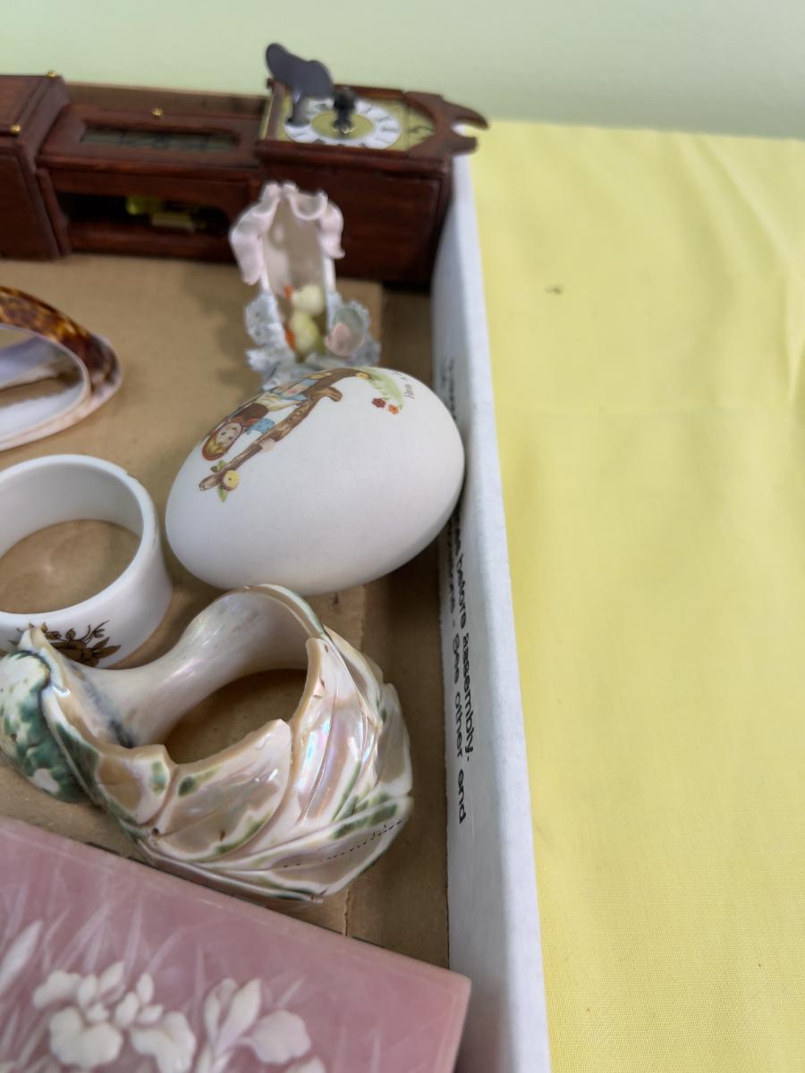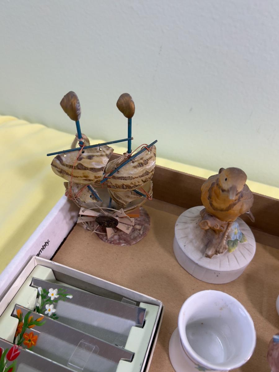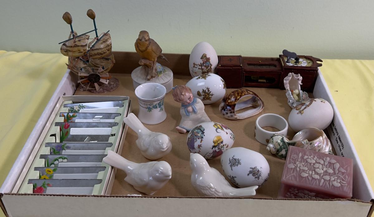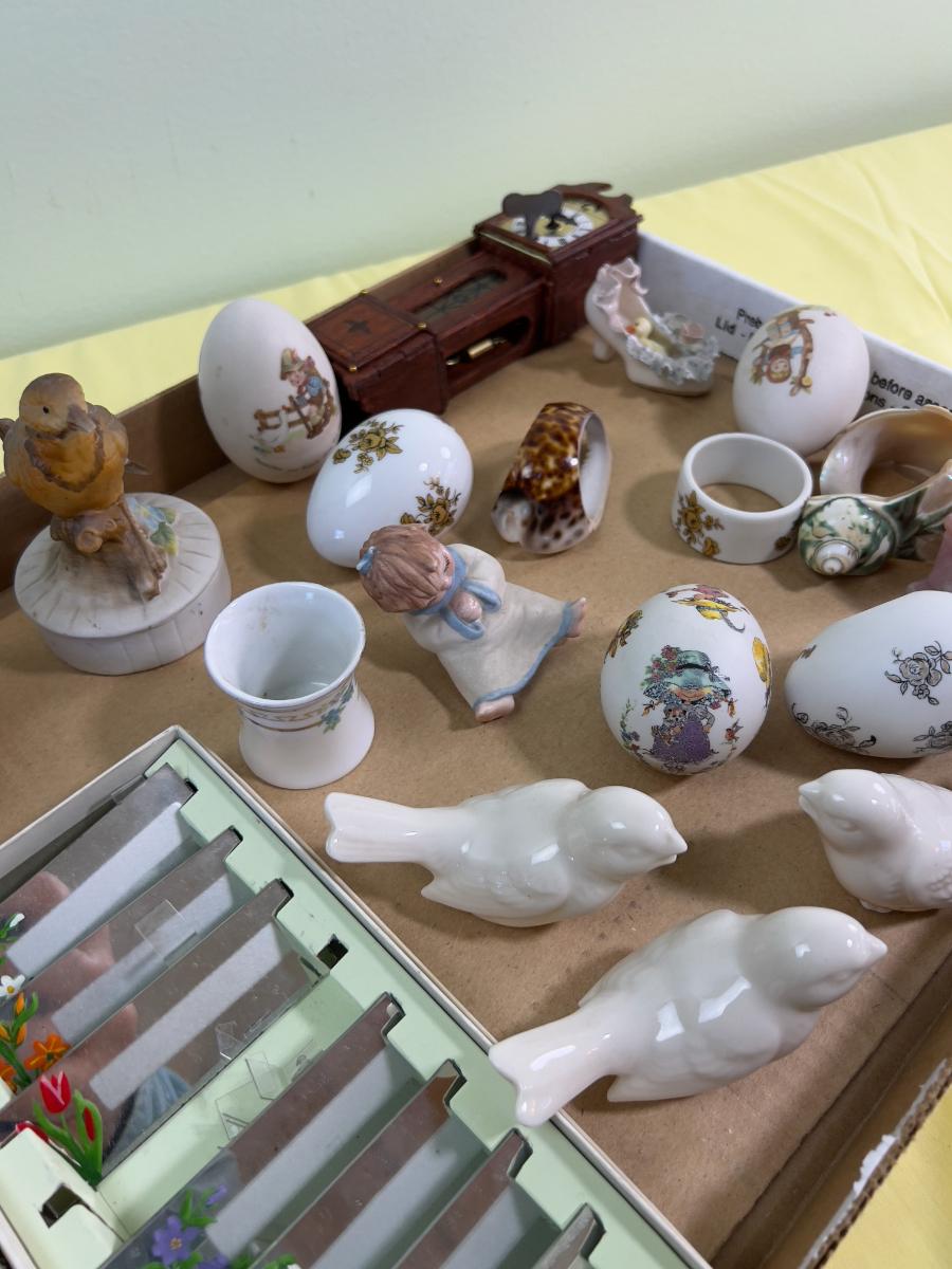 Miniature Do Das and Such Lot: Eggs, Birds, Napkin Rings , Mirror Name Plates