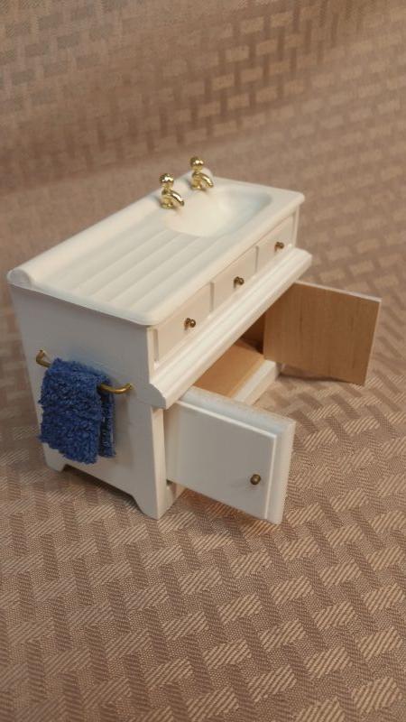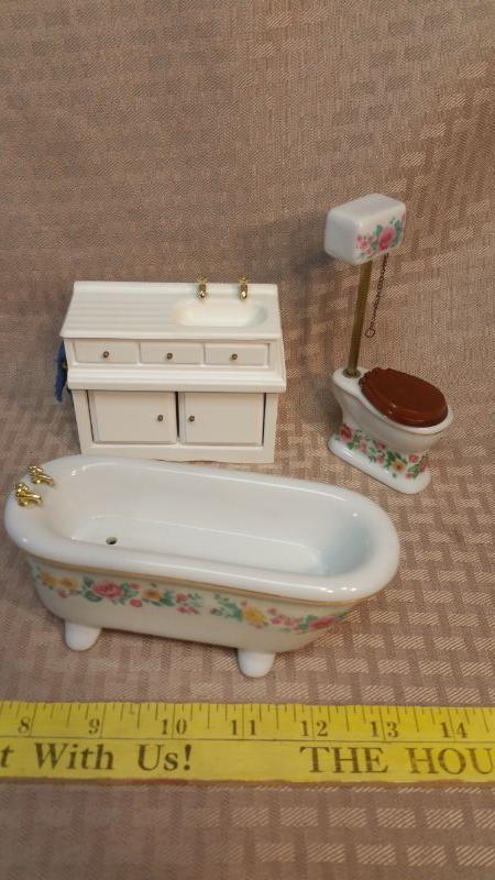 Miniature Dollhouse Bathroom Sink Cabinet, Tub & Toilet
