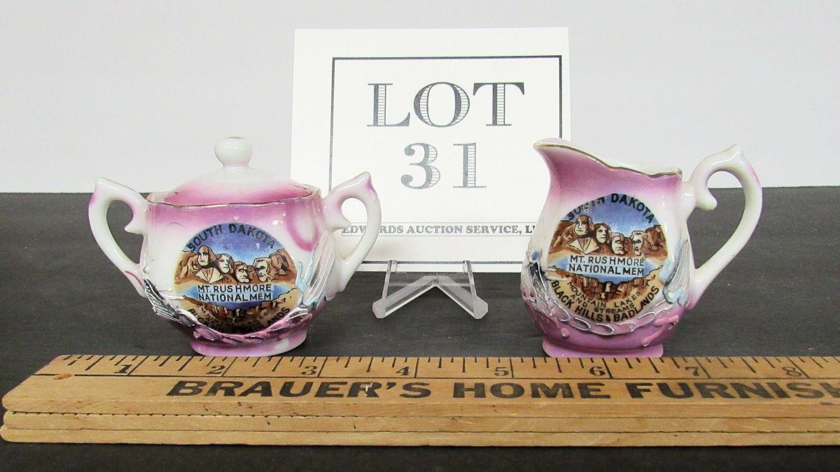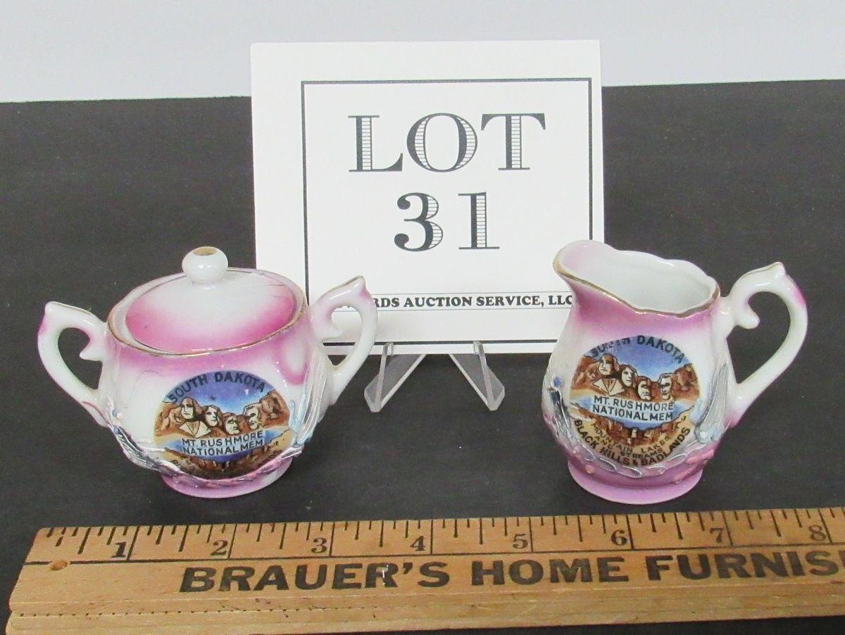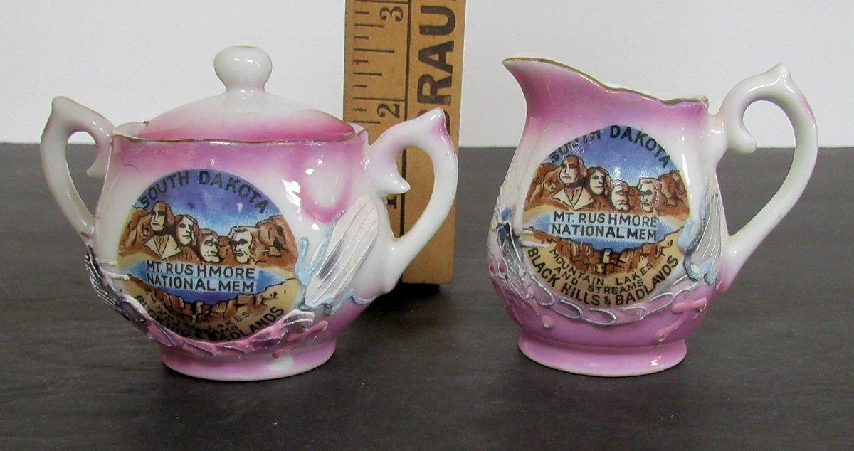 Miniature Dragonware Sugar and Creamer Souvenir of Mt Rushmore, SD.