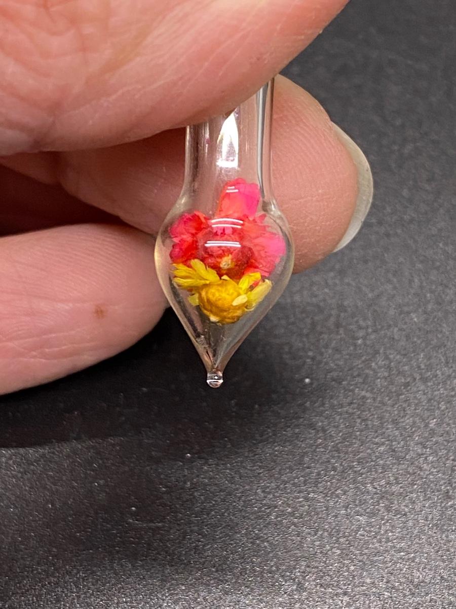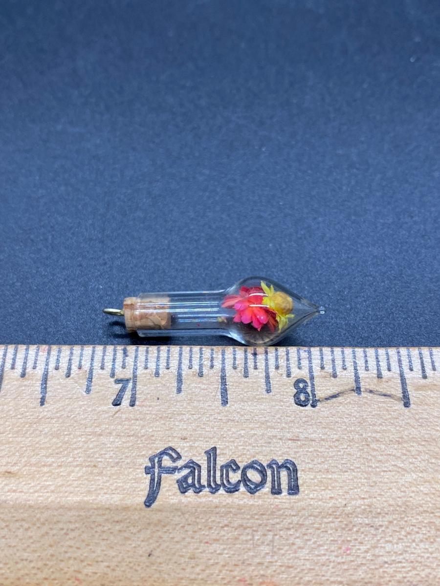Miniature Dried Flowers in Corked Bottle Pendant Charm. Only about 1" length.