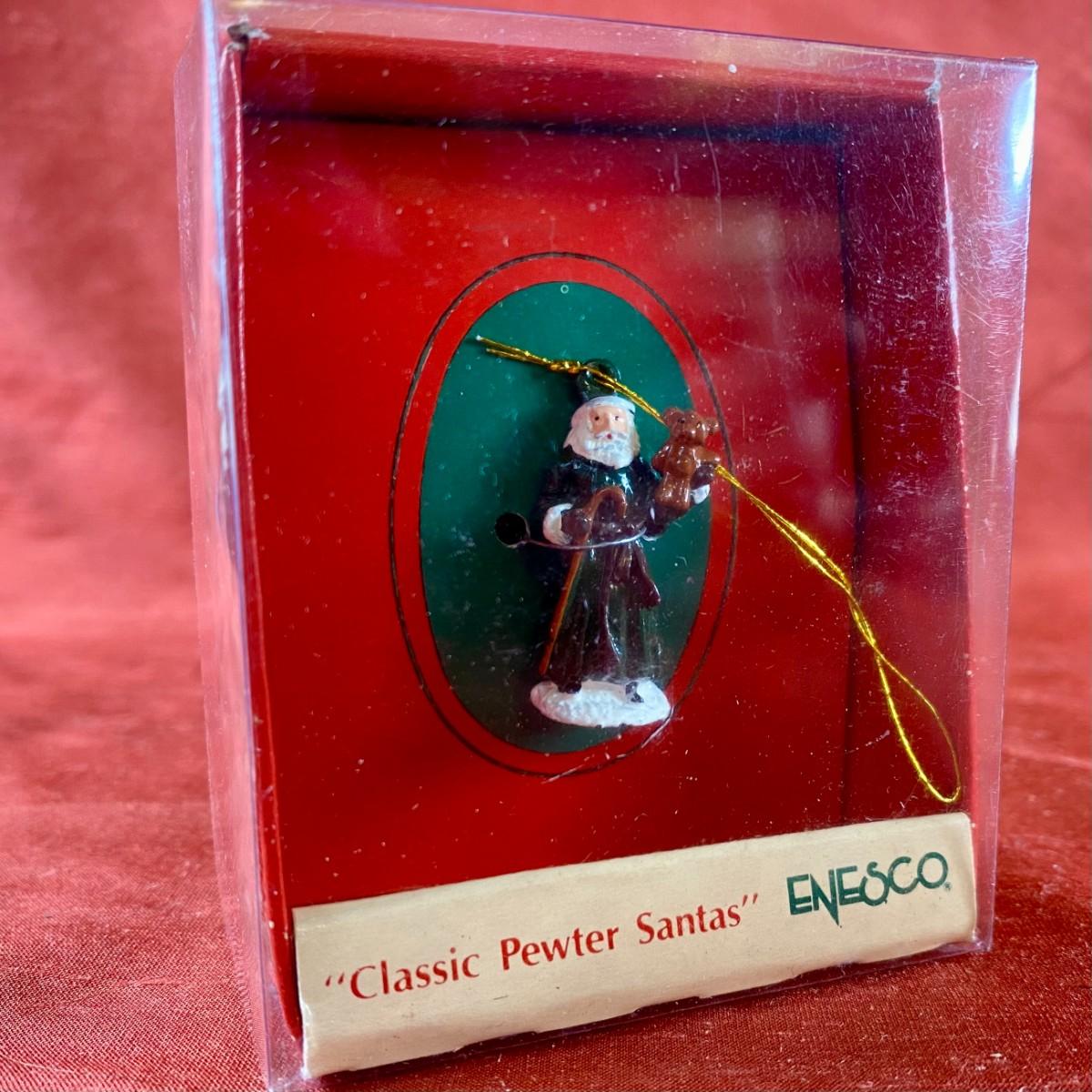 This auction lot is for a Miniature Enesco Pewter Santa, The Santa is about 1.25-inches tall and is in it's original box. This fun holiday item is great for Santa collectors or to add to your miniature Christmas tree.