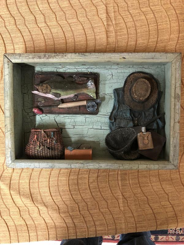 Miniature Fishing Shadow Box 12" x 8" Crackle Finish
