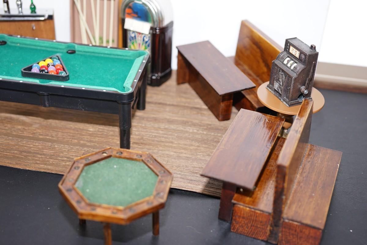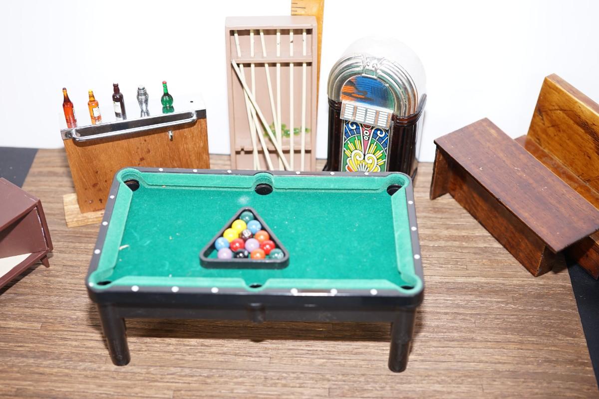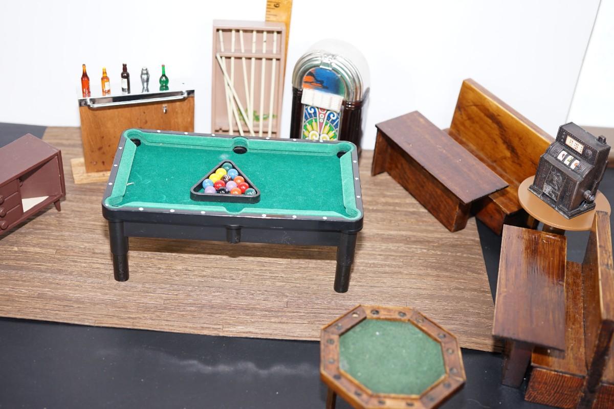 MINIATURE GAME ROOM BILLARD TABLE, GAME TABLE, BAR SET UP AND MORE