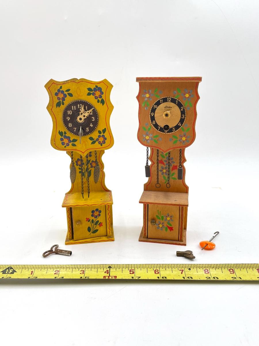 MINIATURE GERMAN KEYWIND GRANDFATHER CLOCKS SET OF 2- “LINDEN BLACK FOREST”