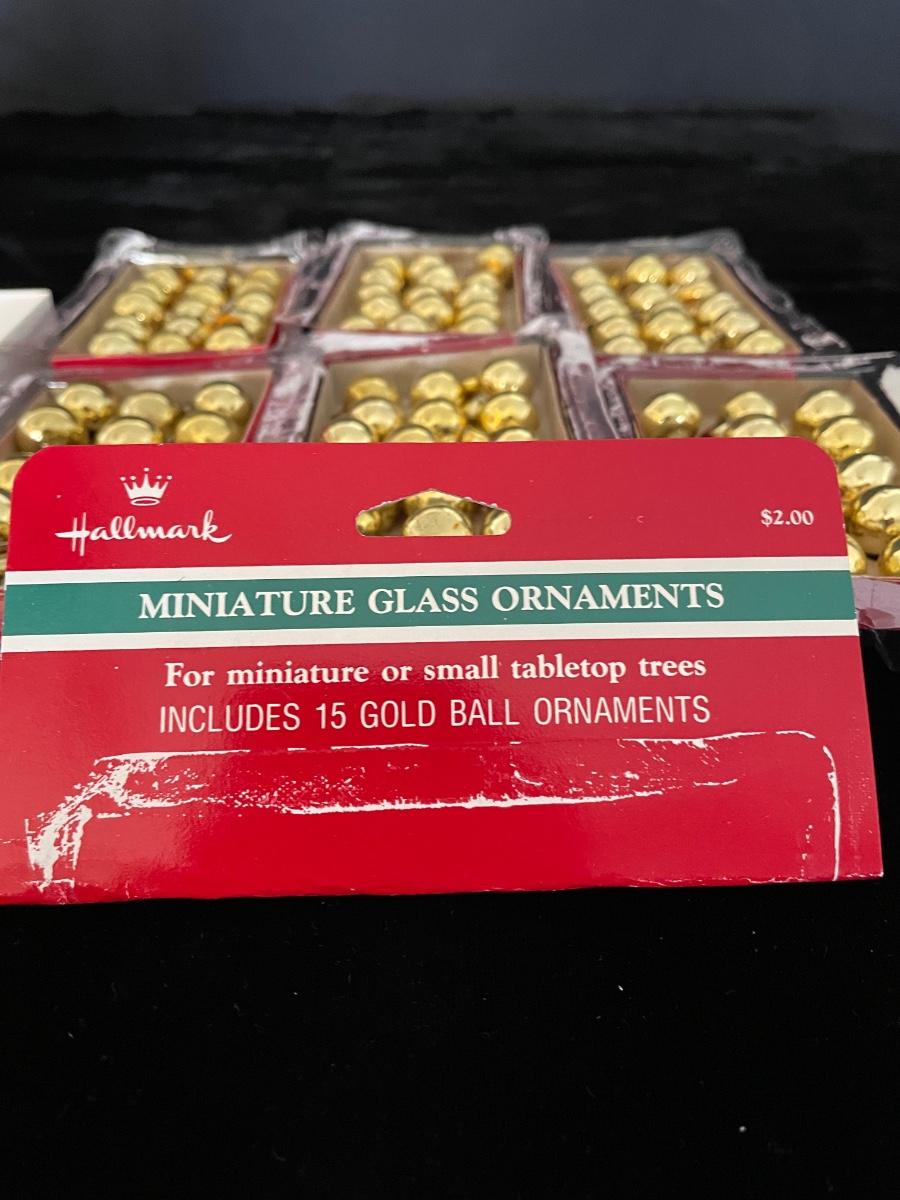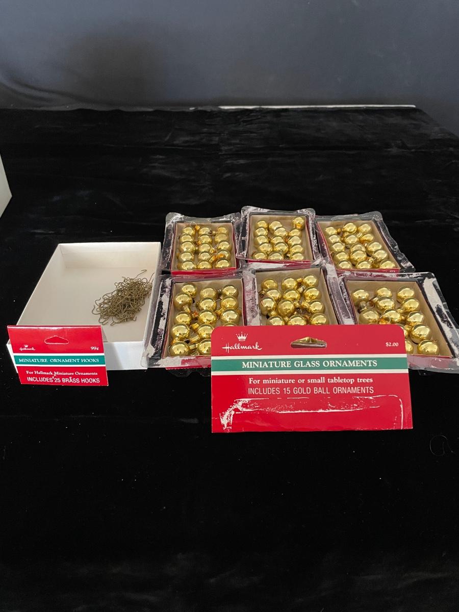 GOLD MINIATURE GLASS ORNAMENTS WITH MINIATURE HOOKS