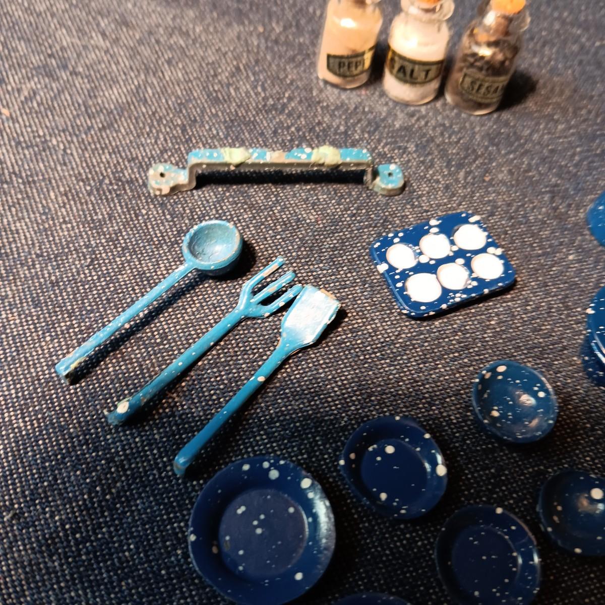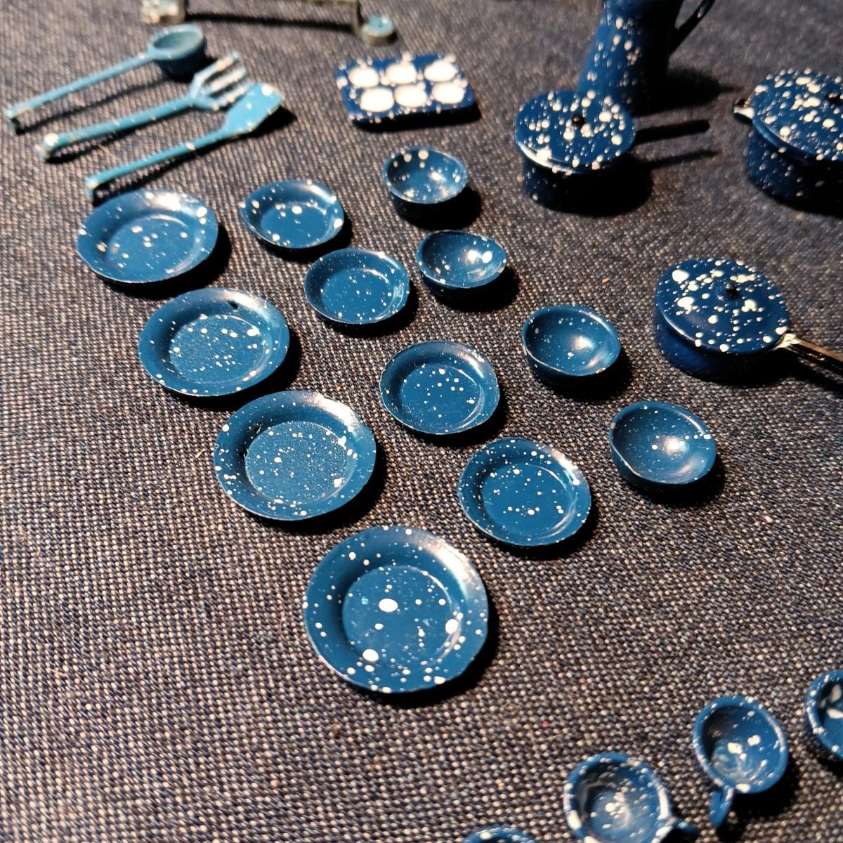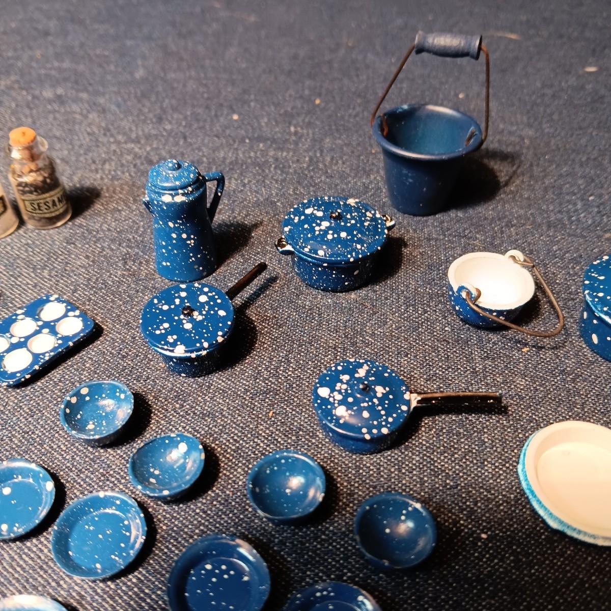 MINIATURE GRANITE WARE DISHES, POTS & PANS PLUS MORE