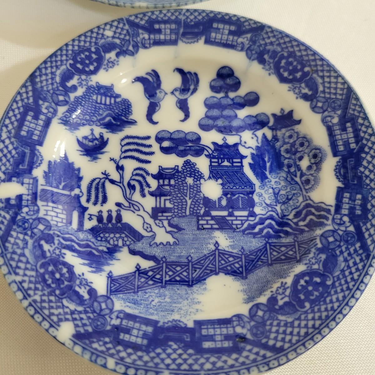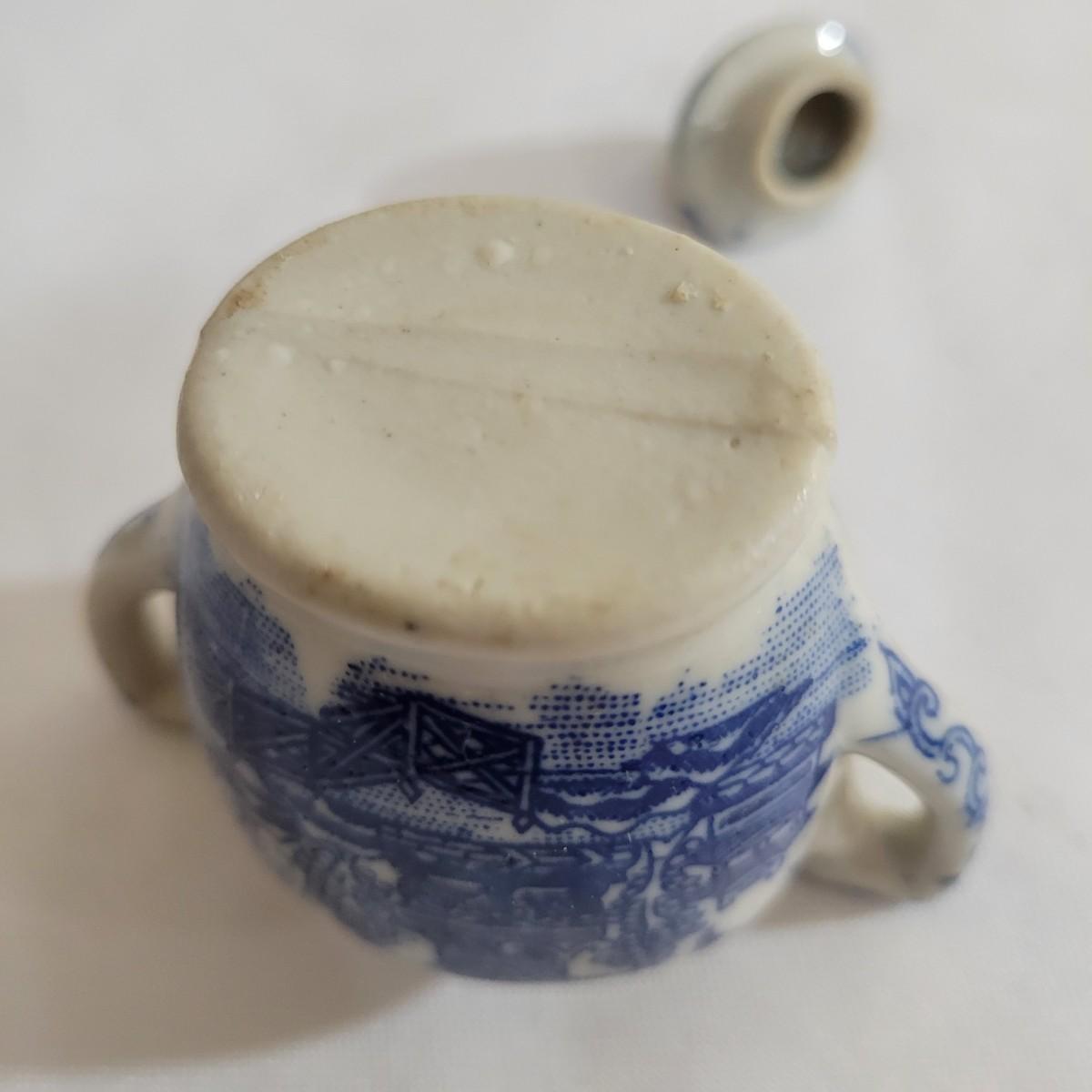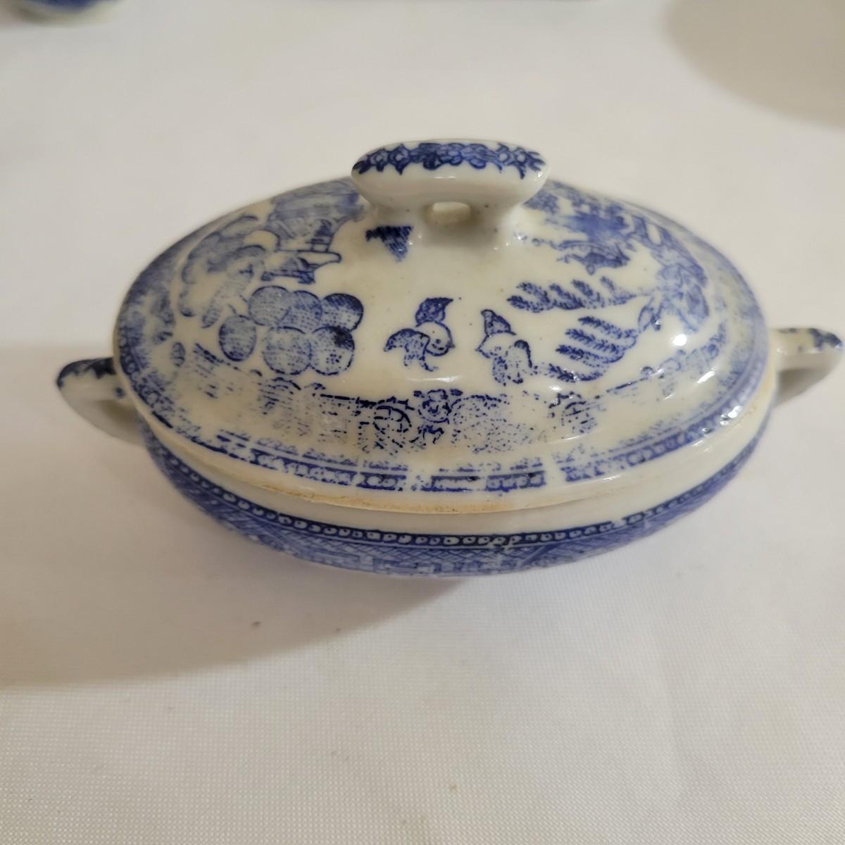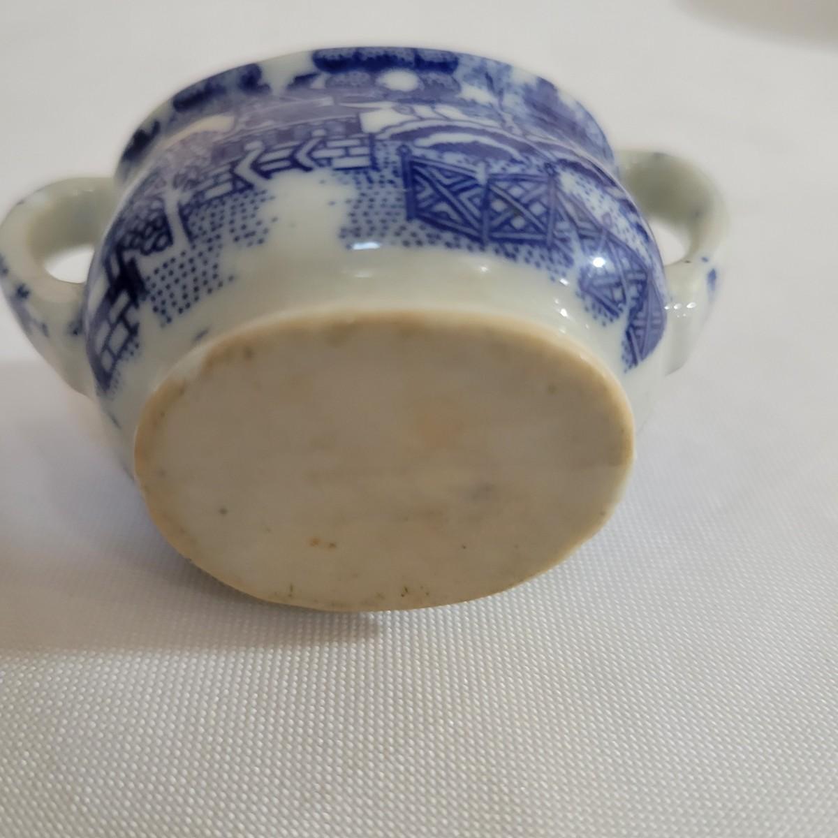 A collection of miniature tea set pieces made in Japan that are in good condition. One plate does have a chip and one piece is faded. Lot includes six teacups, eight plates, seven cup plates, a tea pot, two urns, two pitchers, a large platter and a large lidded bowl. Tea pot measures approximately 4.5" x 2.5" x 4". Pictured box is included. Shipping available