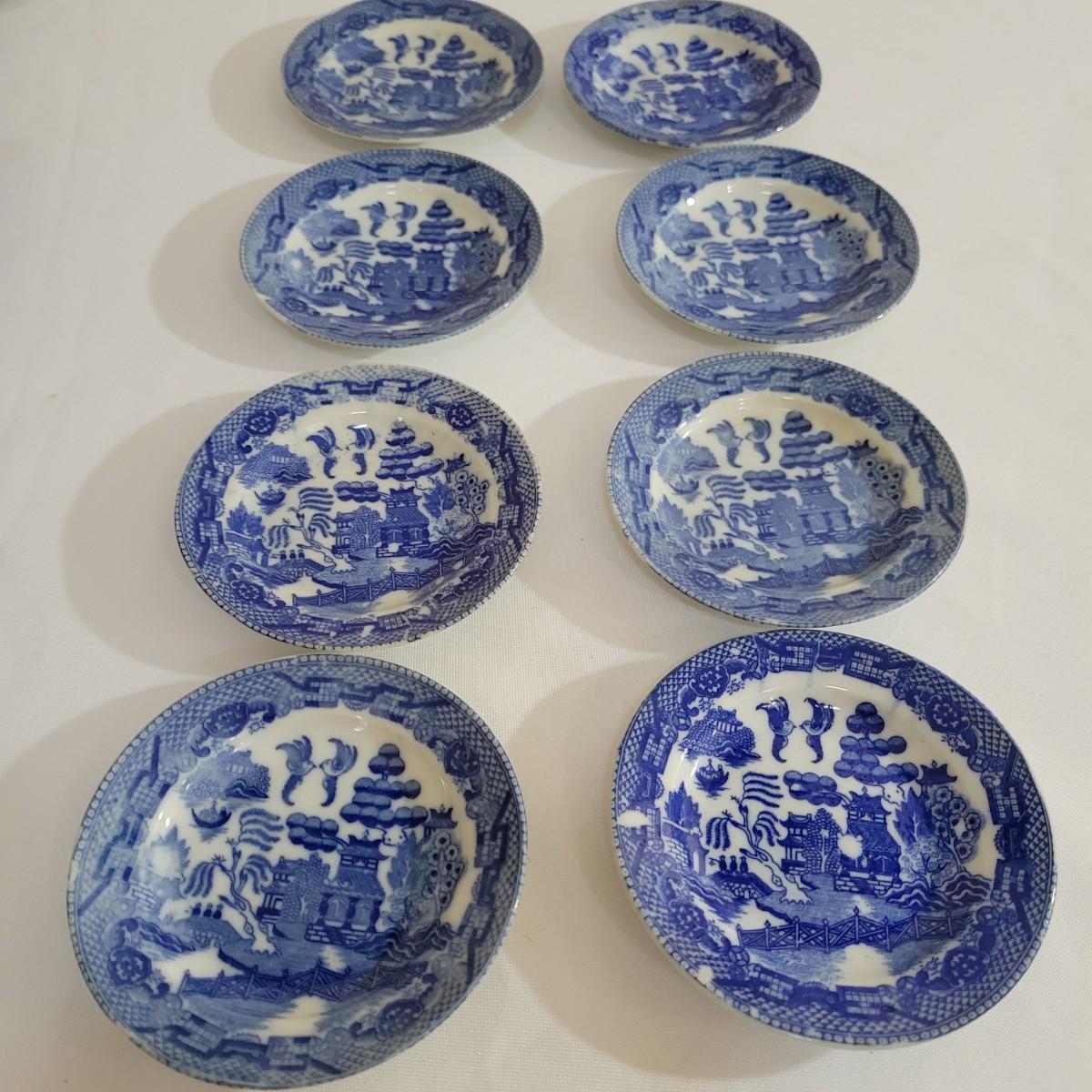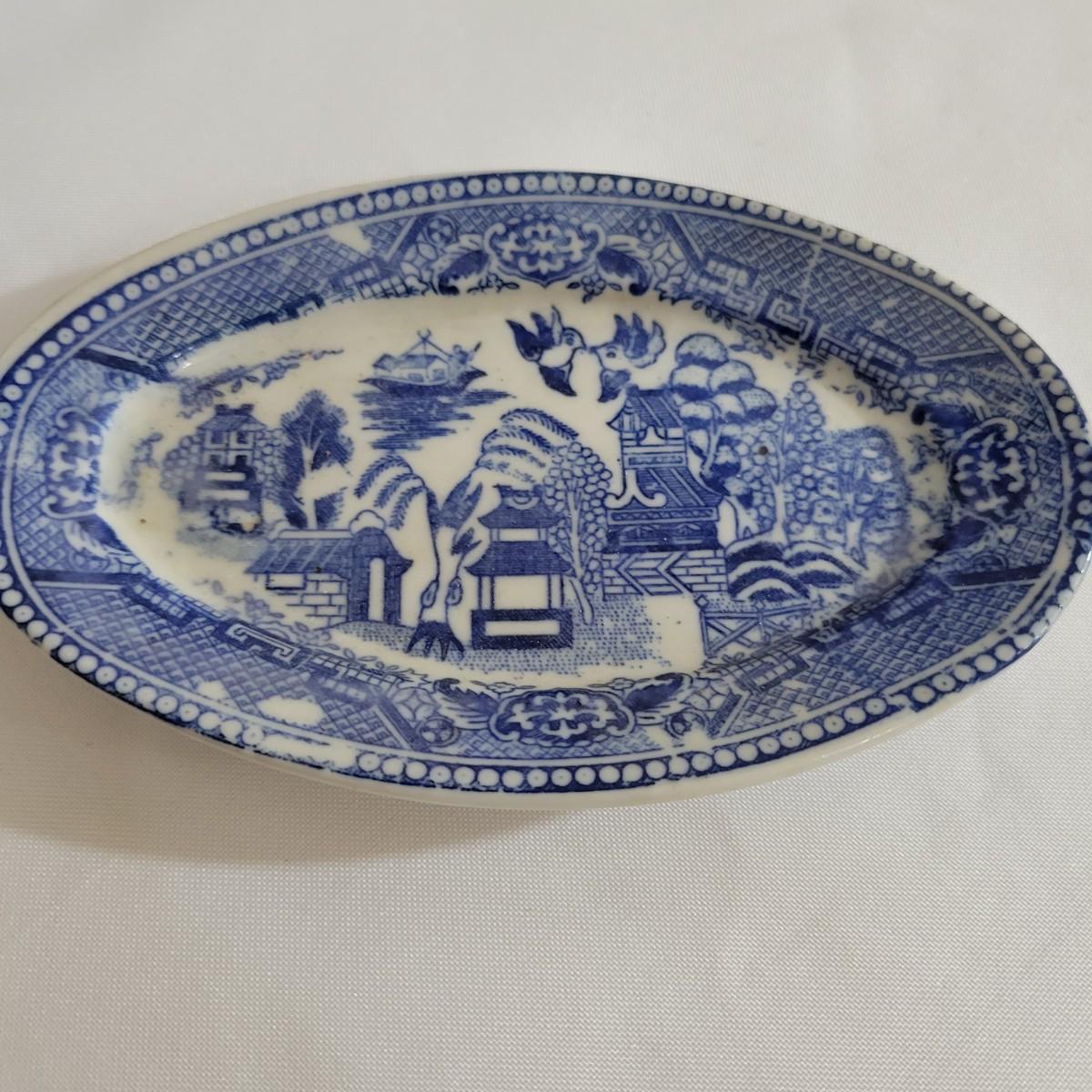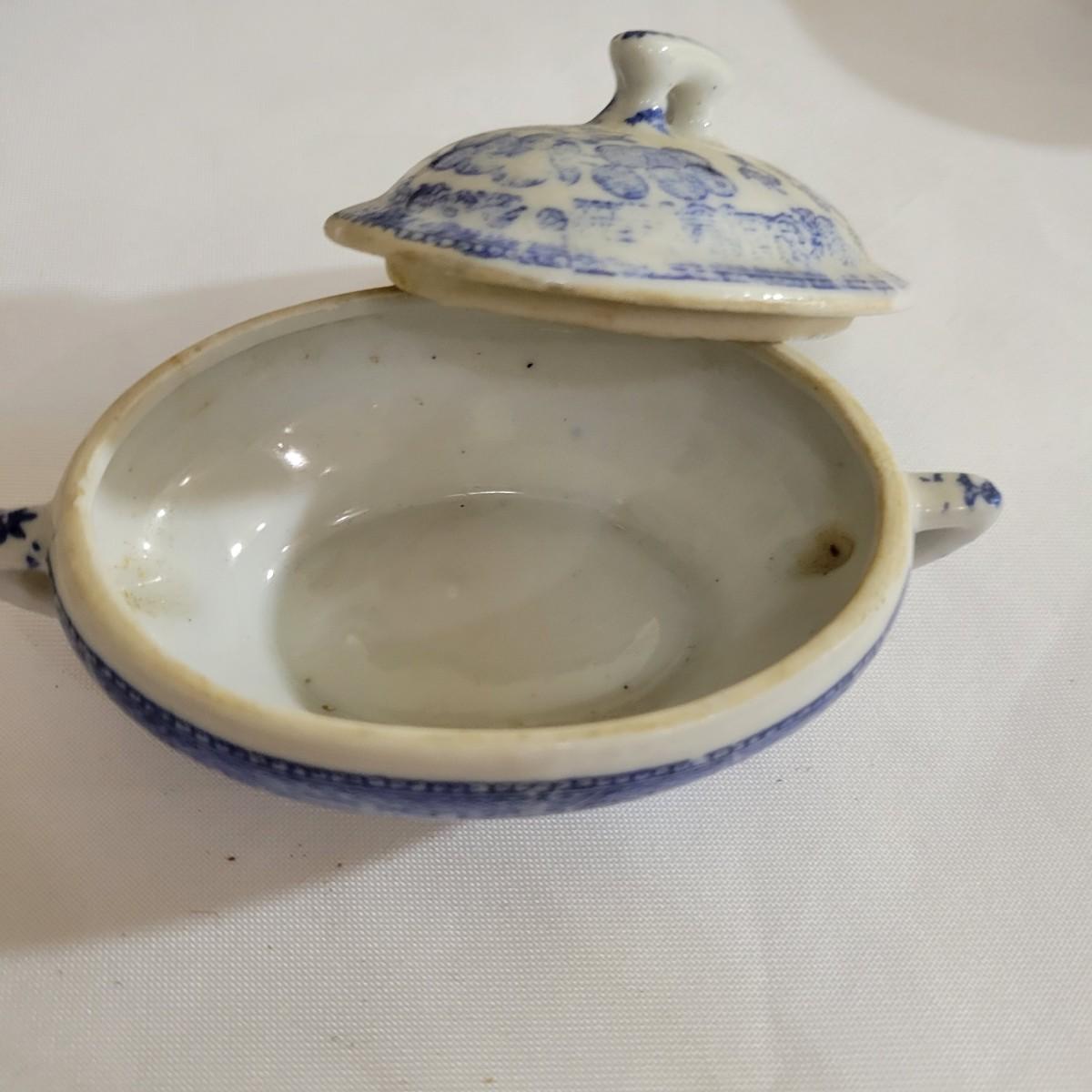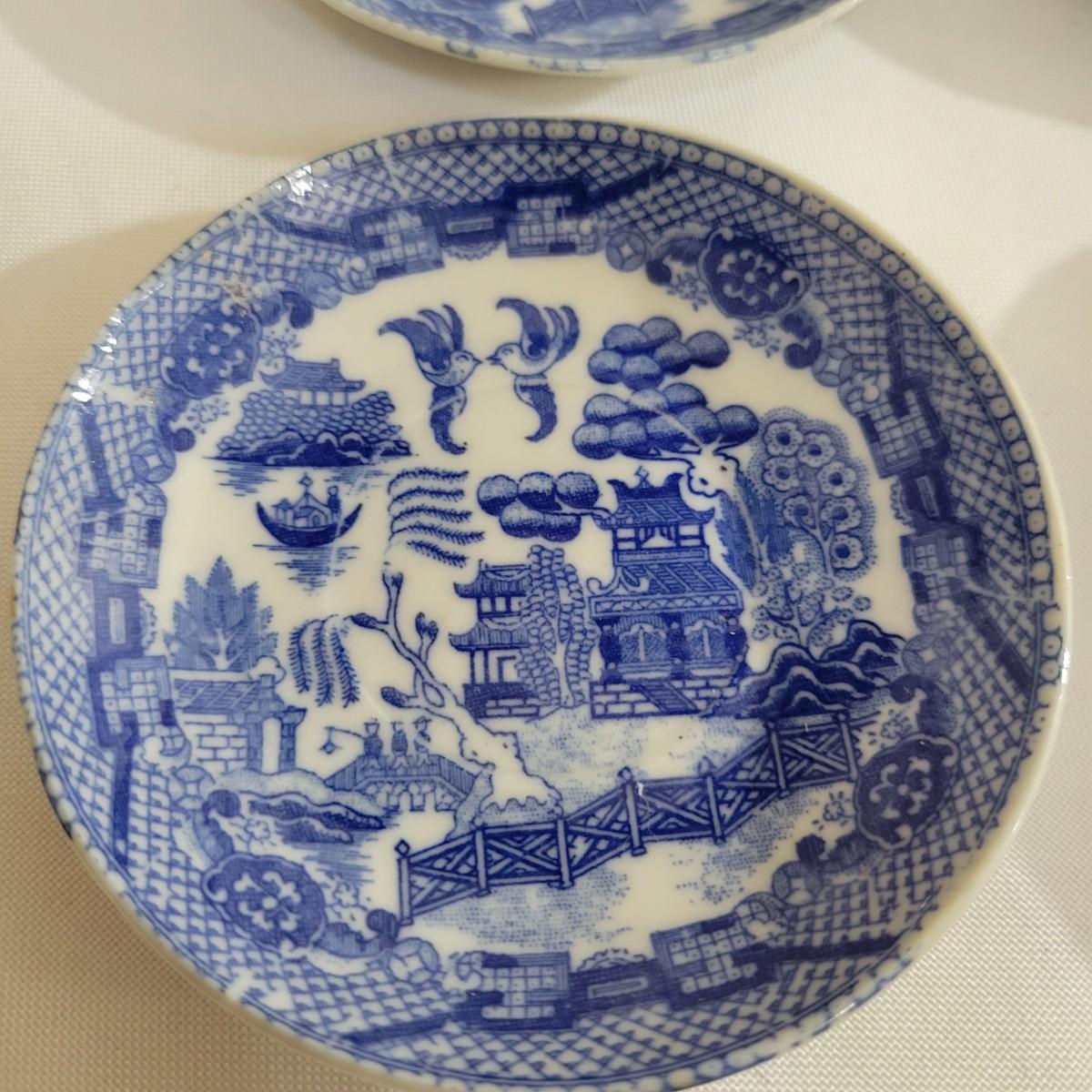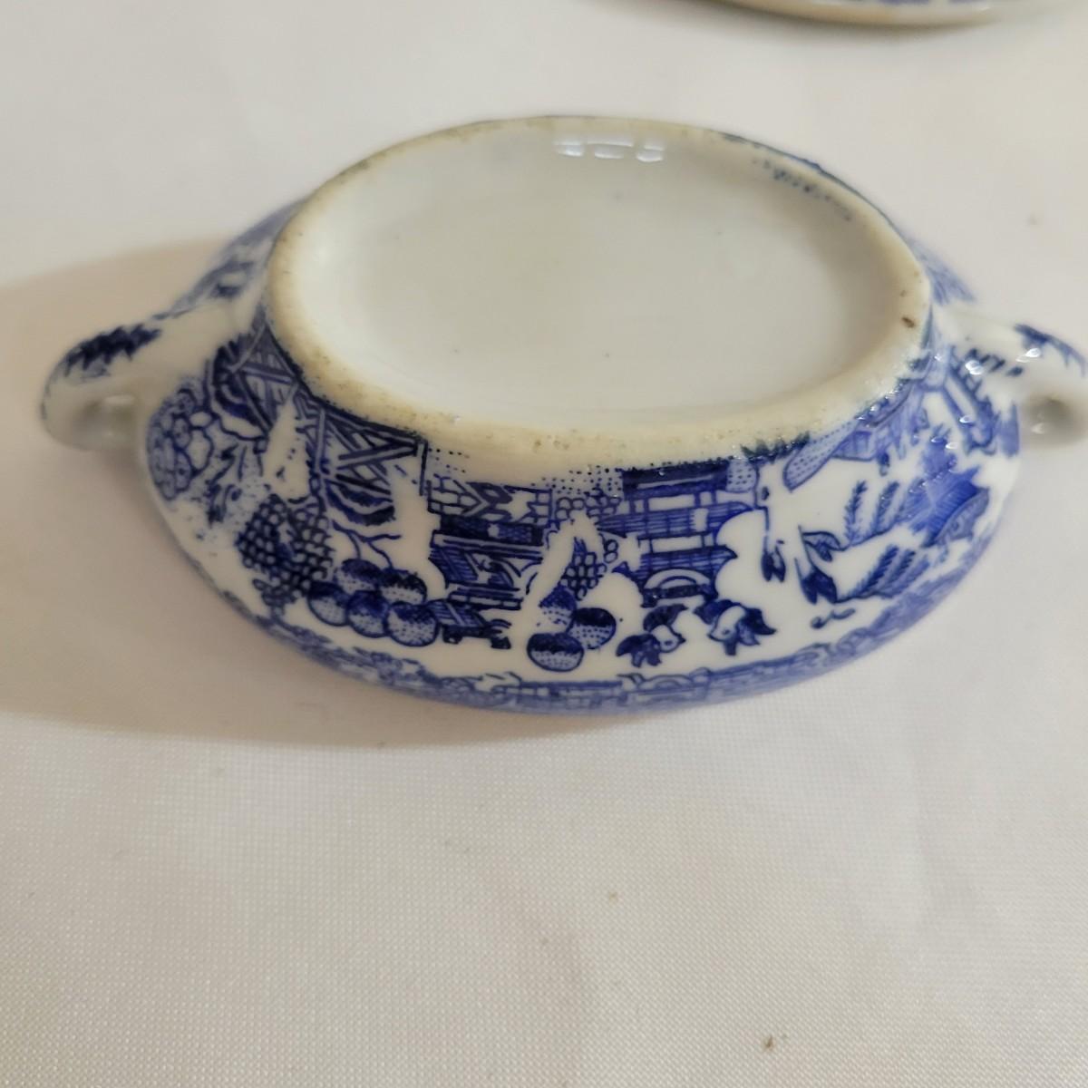 A collection of miniature tea set pieces made in Japan that are in good condition. One plate does have a chip and one piece is faded. Lot includes six teacups, eight plates, seven cup plates, a tea pot, two urns, two pitchers, a large platter and a large lidded bowl. Tea pot measures approximately 4.5" x 2.5" x 4". Pictured box is included. Shipping available