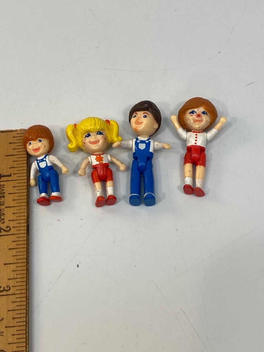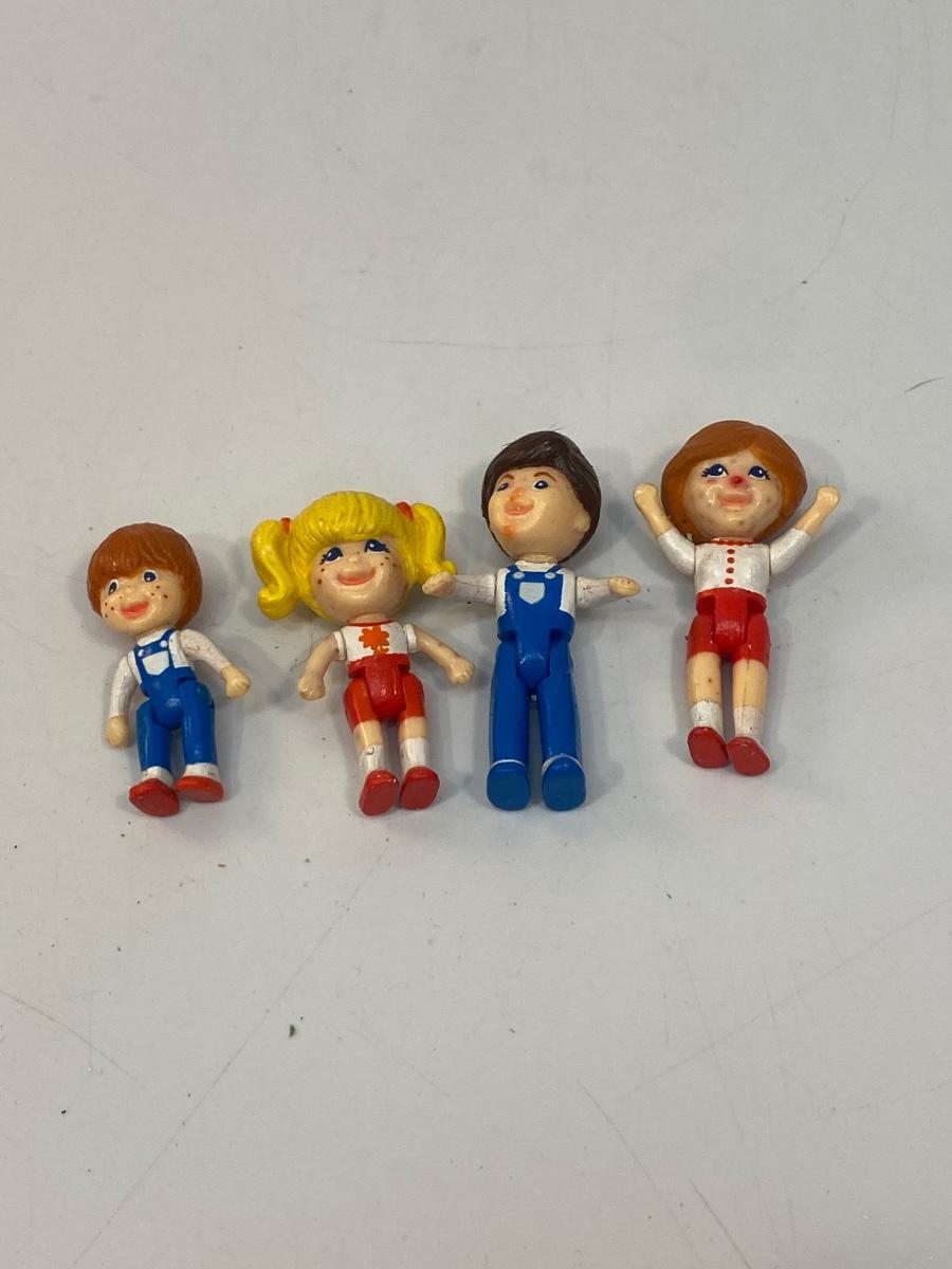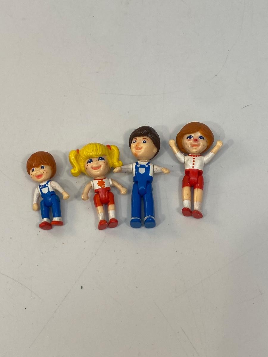 Miniature Jointed Dolls Figures Family. Legs bend at hip and arms rotate. Face paint is not good. Under 2" size.Feel like soft plastic or rubber.