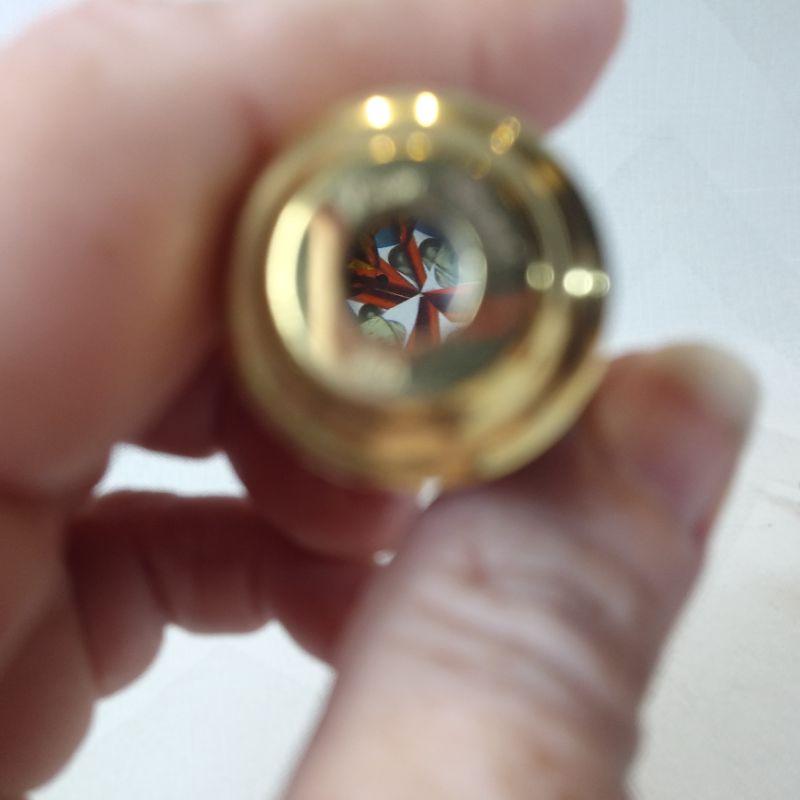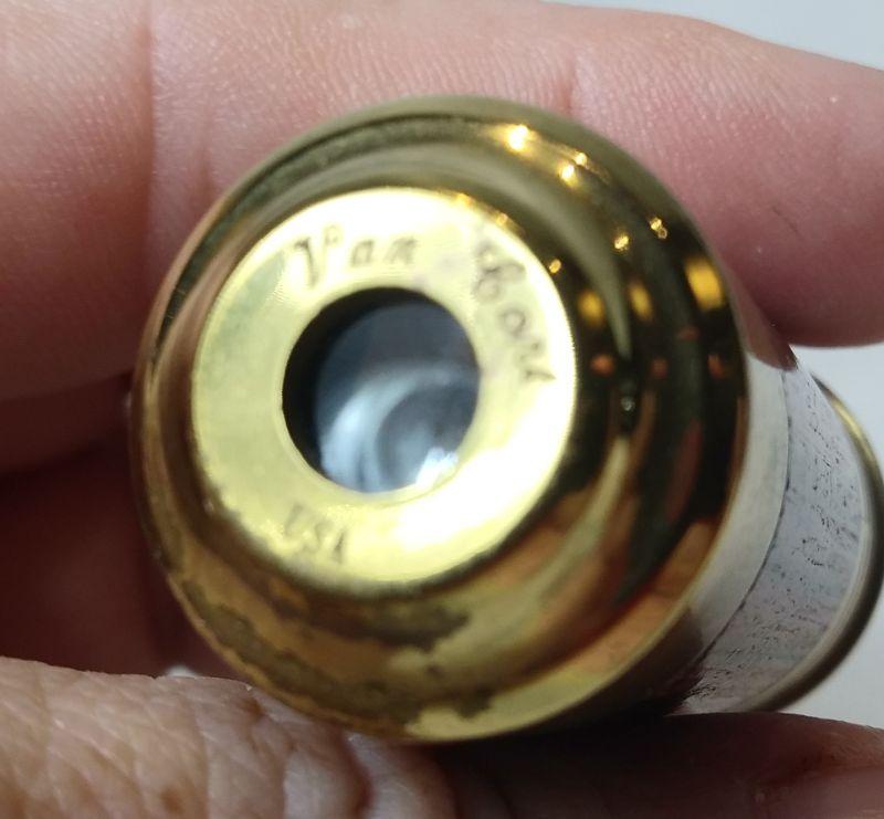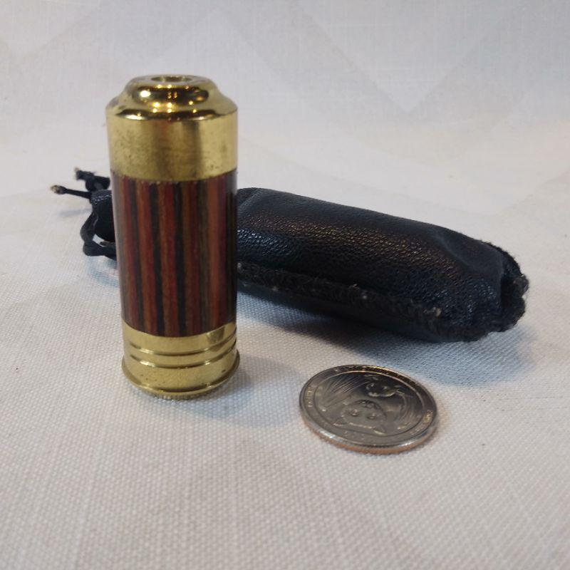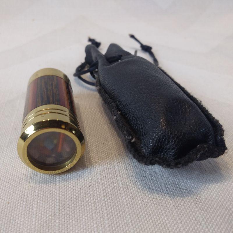 This auction lot is for a beautiful Miniature Kaleidoscope by Van Cort - USA. It has its original pouch, the kaleidoscope is made of fine wood and brass. It measures only about 2-inches but has big style.
