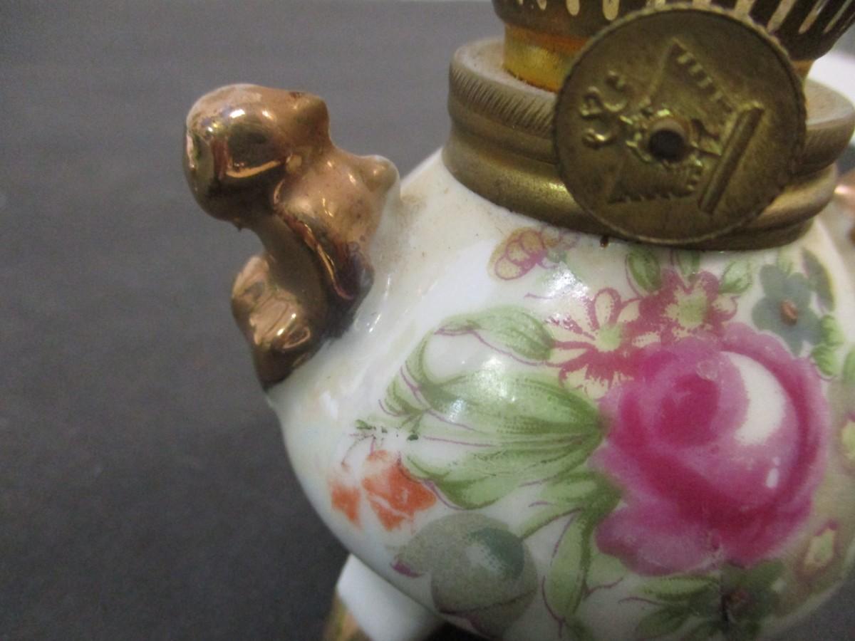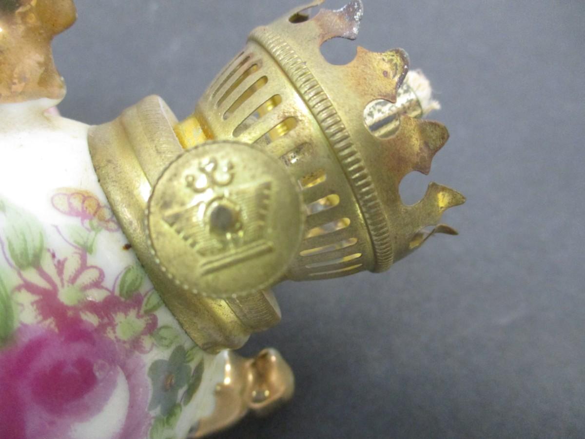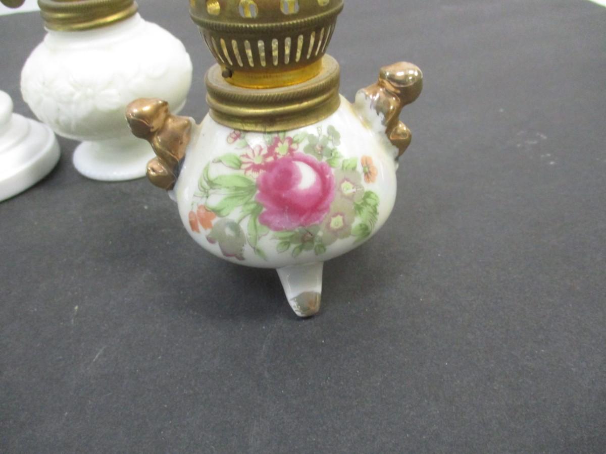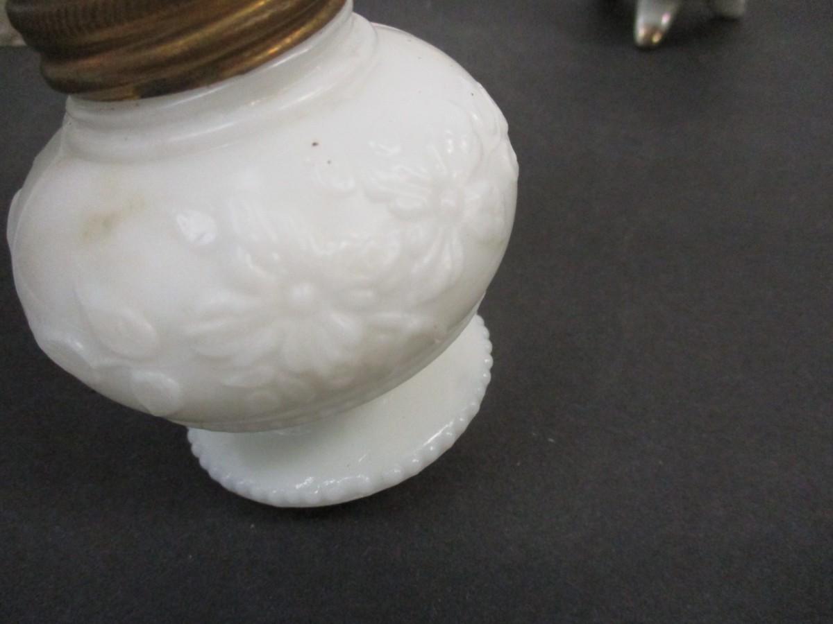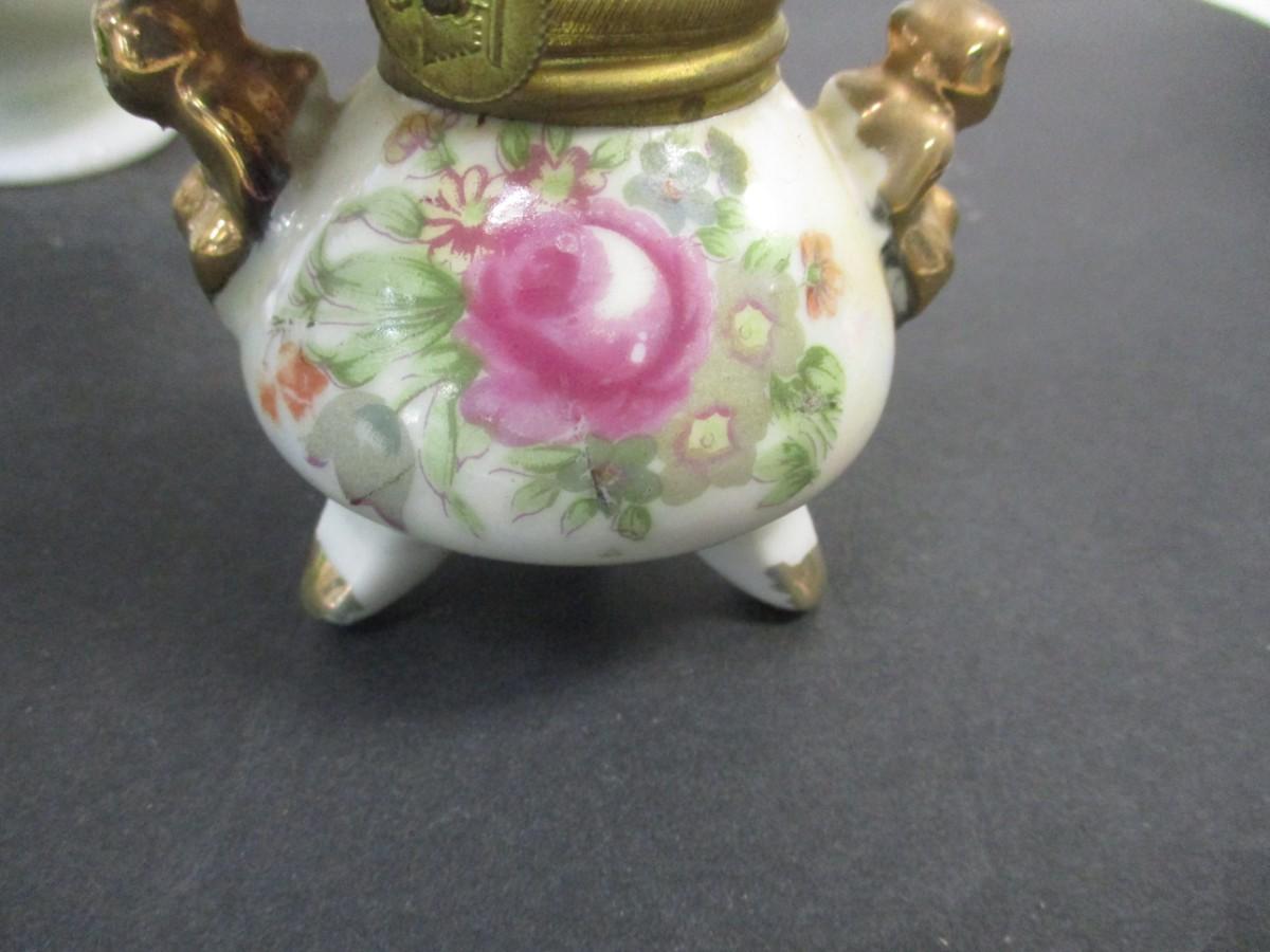 Miniature Lamps - Hong Kong Green Glass Lamp - LE Smith Clear Hobnail Lamp - Milk Glass Lamp With Embossed Design - Porcelain Pink Red Roses Hand Painted Gilding Lamp Japan #3