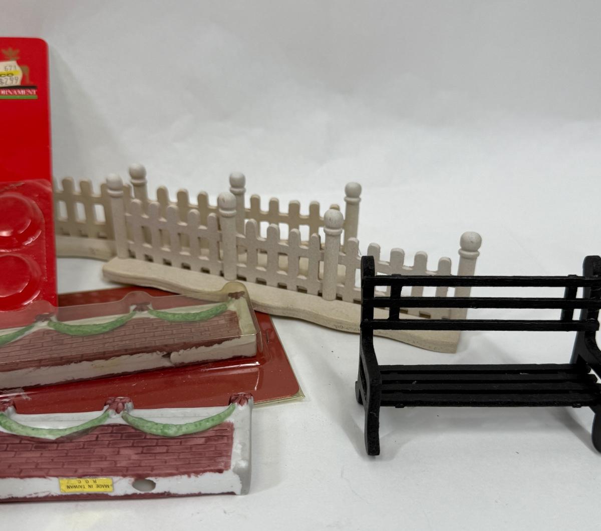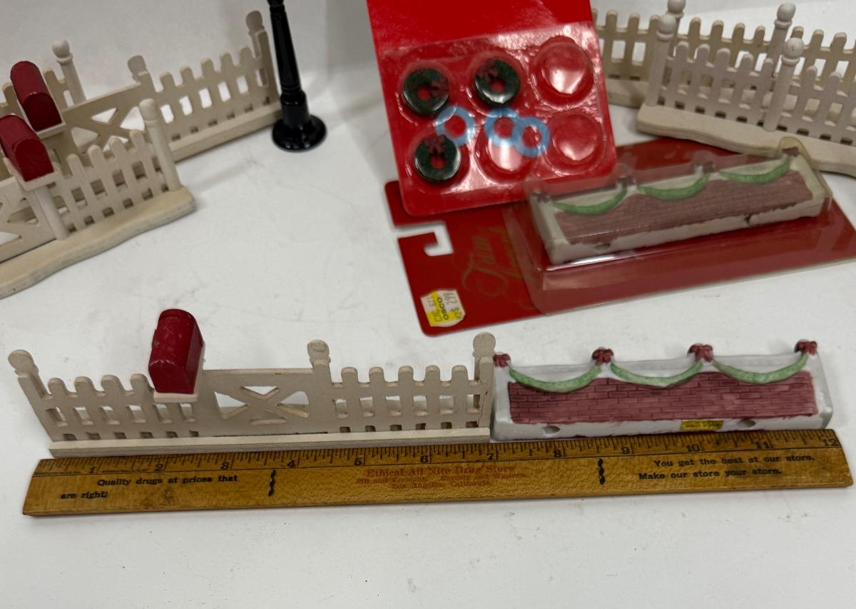 Fences, Mailboxes, Brick Walls , Bench, Signpost, Wreaths in good condition.