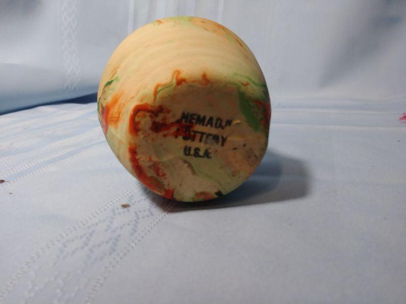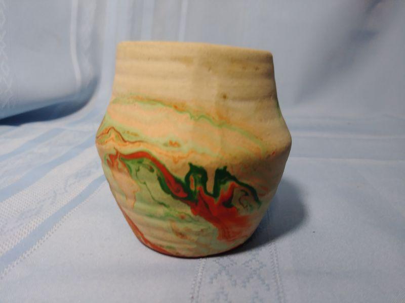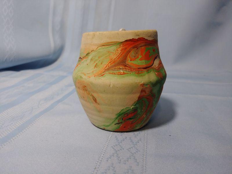 Miniature Namadji Vase with Green and Orange Swirls 3" x 3"